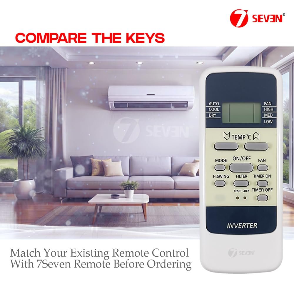 7SEVEN® Compatible with Hitachi AC Remote Control Model 137B Suitable for Split and Window 1 1.5 2 Ton Air Conditioner Remote – Match Keys Exactly to Replicate Genuine Remote Function