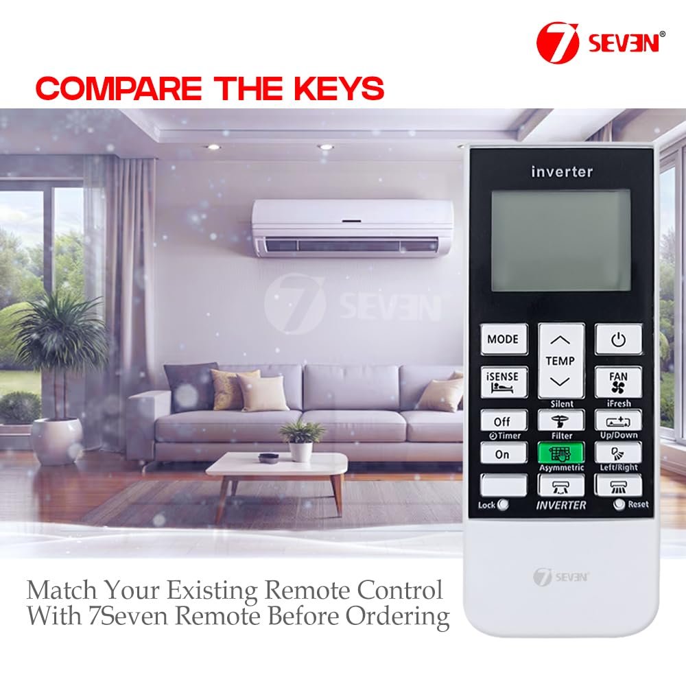 7SEVEN® Compatible with Hitachi AC Remote Control Model 168E Suitable for Split and Window 1 1.5 2 Ton Air Conditioner Remote – Match Remote Keys Exactly to Replicate Genuine Remote Function