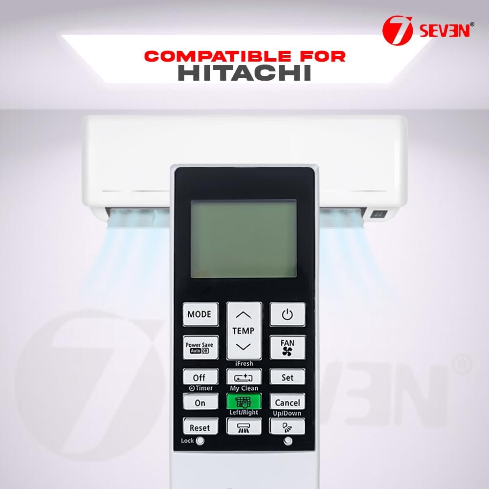 7SEVEN® Compatible with Hitachi AC Remote Control Model 168G Suitable for 1 1.5 2 Ton Split and Window Inverter Air Conditioner – Match Each Key by Key Exactly with Existing AC Remote Function