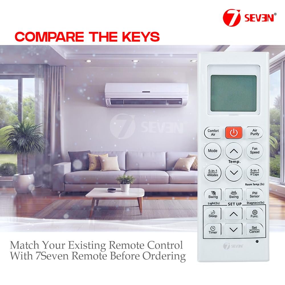 7SEVEN® Compatible with LG AC Remote Control Model 36R Suitable for 1 1.5 2 Ton Split and Window Air Conditioner – Match Each Key by Key Exactly with existing AC Remote Function