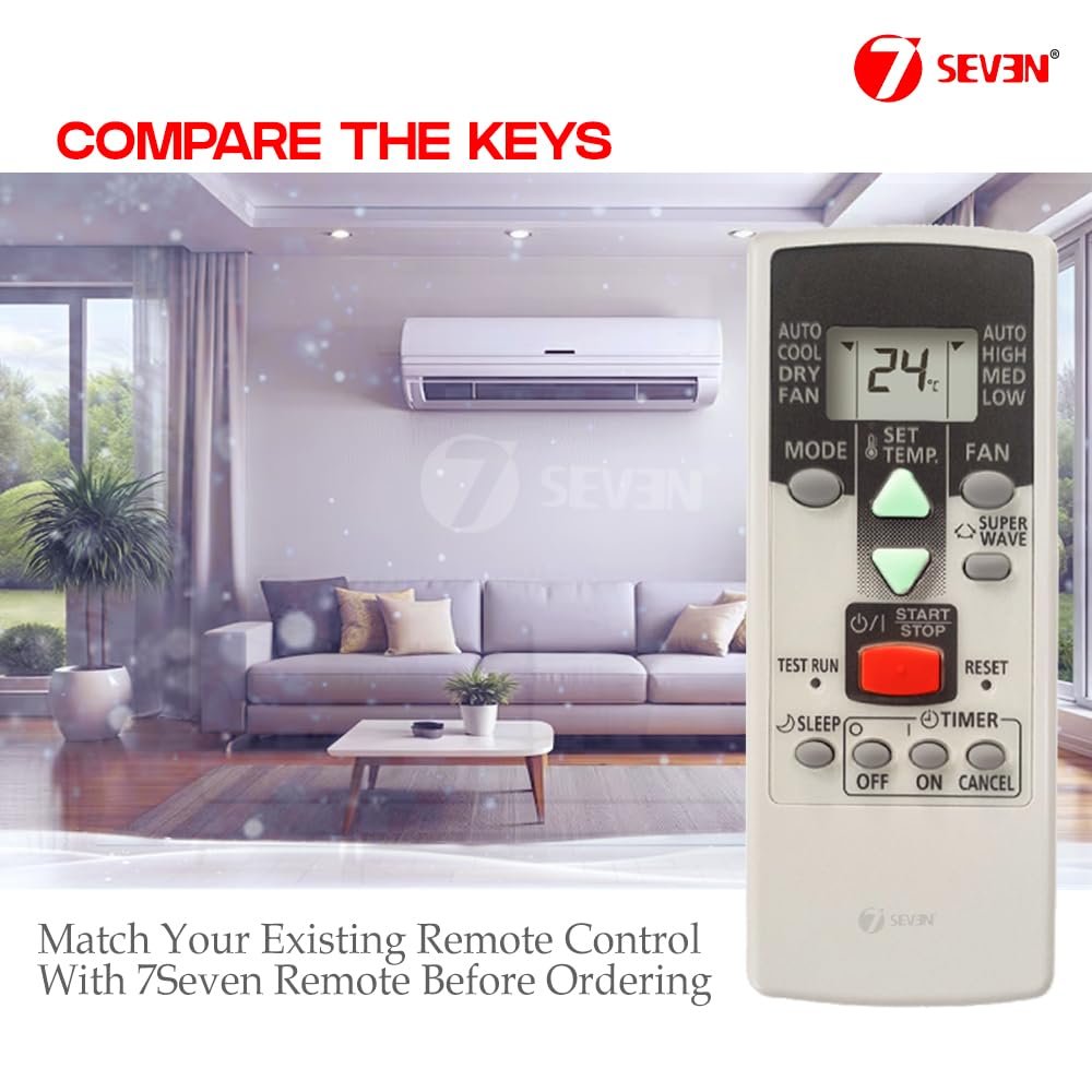 7SEVEN® Compatible with O General AC Remote AR-RCD2E Model 123 Suitable for 1 1.5 2 Ton Spilt and Window Fujitsu Air Conditioner – Match Keys Exactly with Existing OGeneral AC Remote Controller