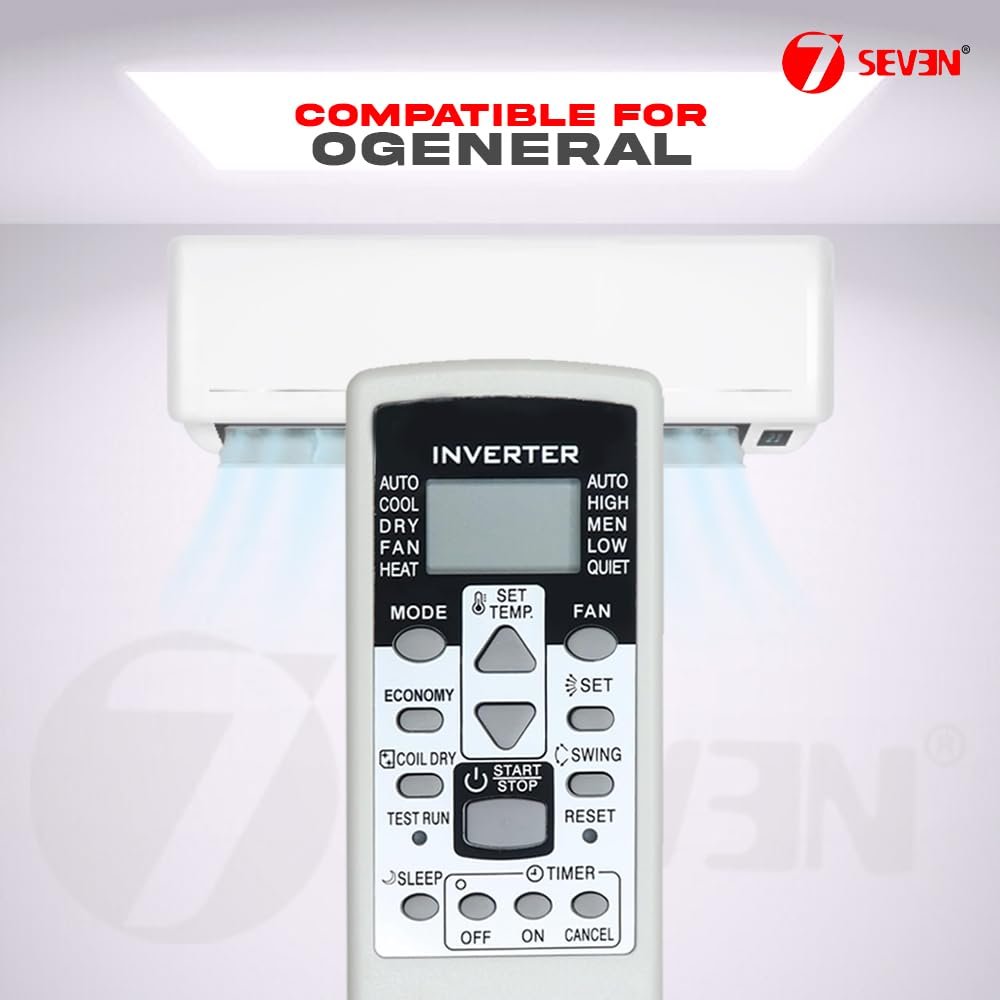 7SEVEN® Compatible with O General AC Remote Control Model 113C Suitable for Split & Window 1 | 1.5 | 2 Ton Air Conditioner Remote – Match Remote Keys Exactly to Replicate Genuine Remote Function