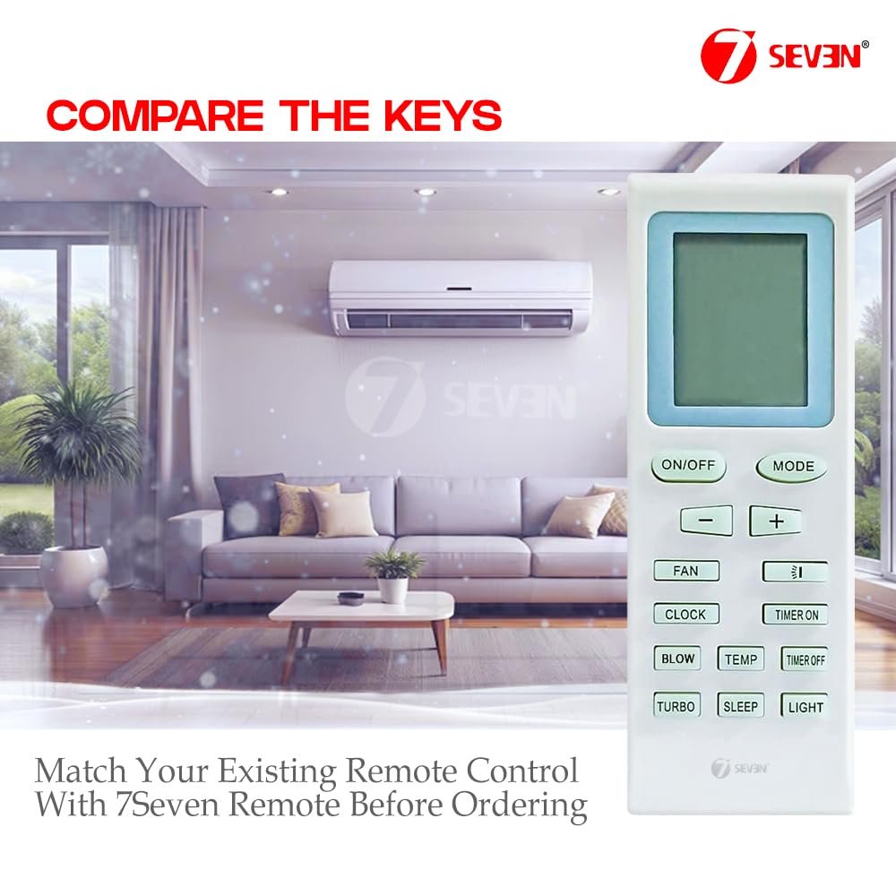 [Important] Kindly match your existing AC Remote KEY BY KEY with our 7SEVEN AC Remote and place the order. If this remote is not matching your existing remote, Please scroll down to check on more remote models with respective images of this particular AC Brand. If you find the remote which you are searching for in the consolidated remote models, Then please search for the 7SEVEN AC remote model in the amazon.in search tab. For Example: 7SEVEN VOLTAS 18A MODEL