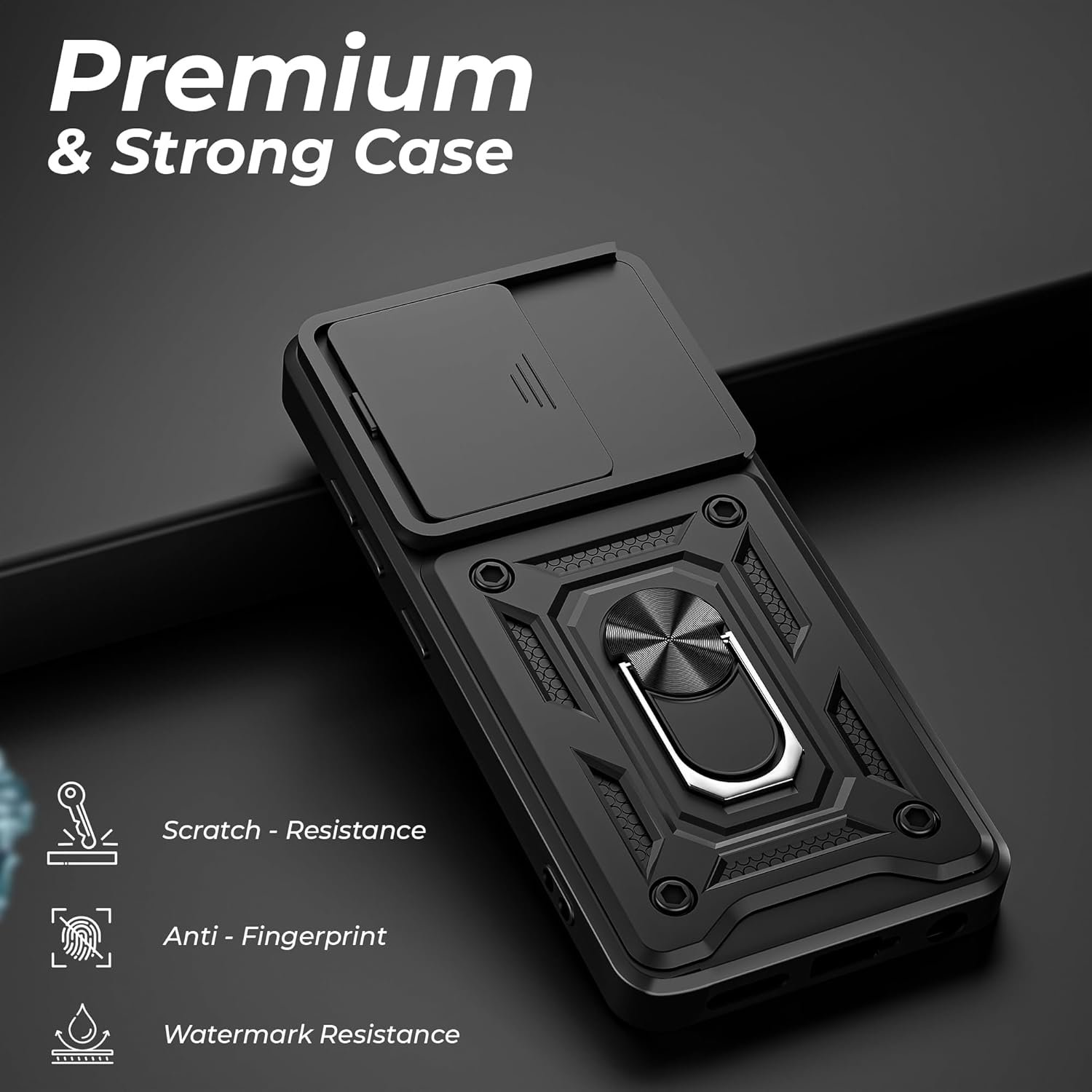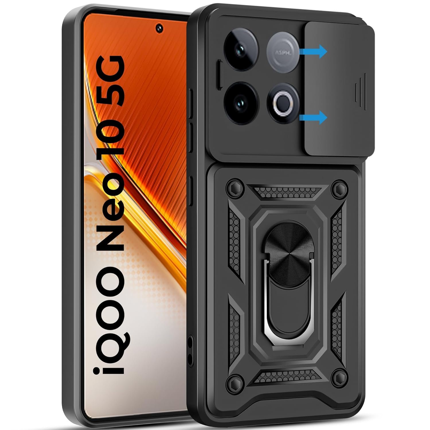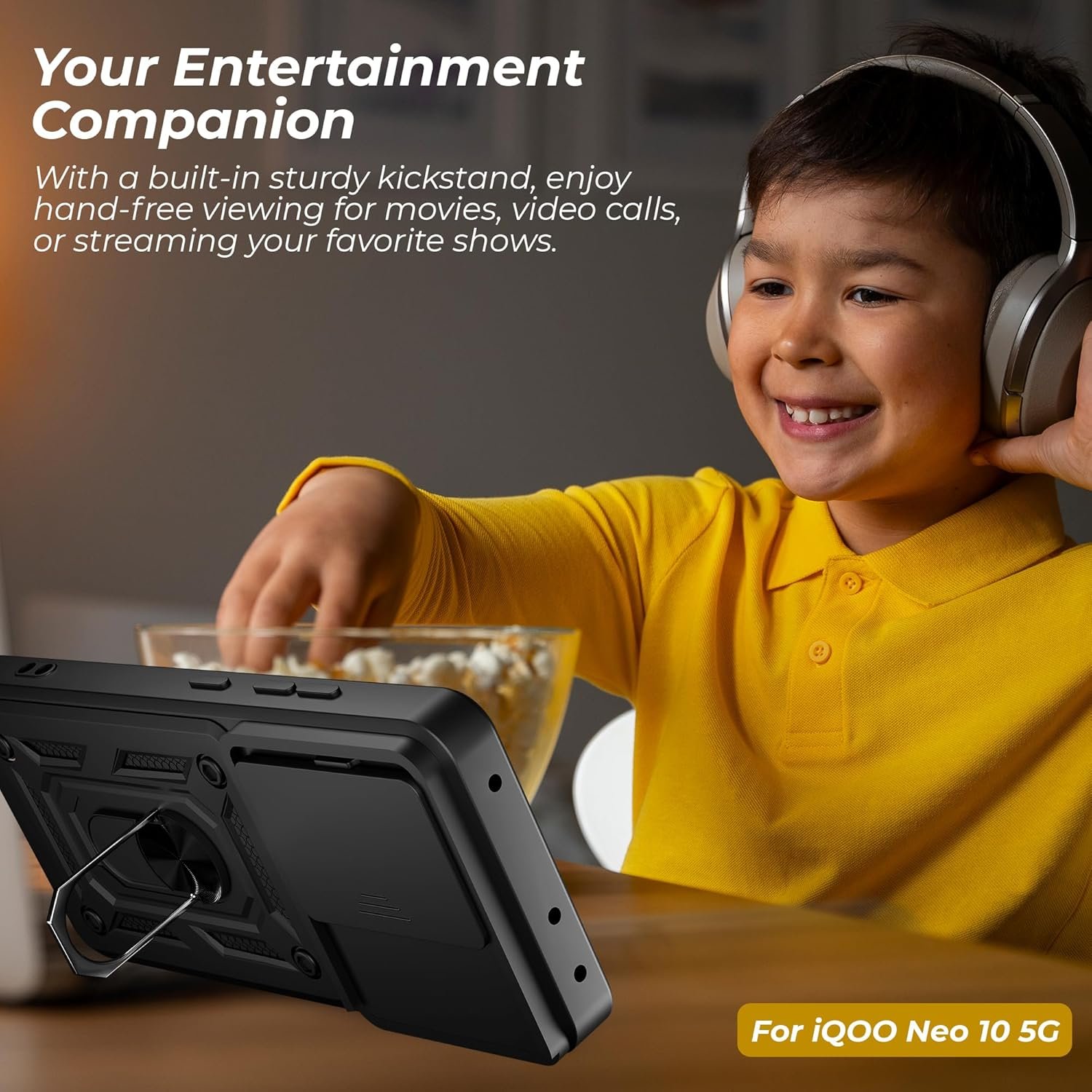A rtistque Armor Bumper Back Case Cover for iQOO Neo 10 5G | Stylish Ring Holder & Inbuilt Stand | Sliding Camera Cover | Shockproof TPU Protective Design | iQOO Neo 10 Back Cover – Black