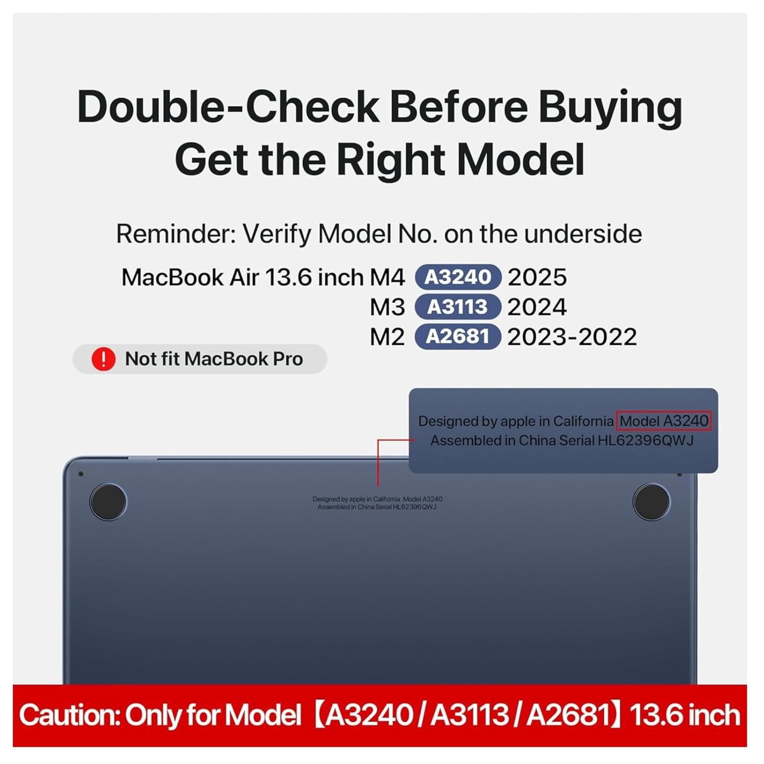 Only Compatible for NEW M4 M3 M2 Macbook Air 13.6 inch with Touch ID(Model:A3240, A3113, A2681,Released in 2025 2024 2023 2022) Please check the Macbook model “AXXXX” on the back before purchasing. Not compatible with other Macbook model