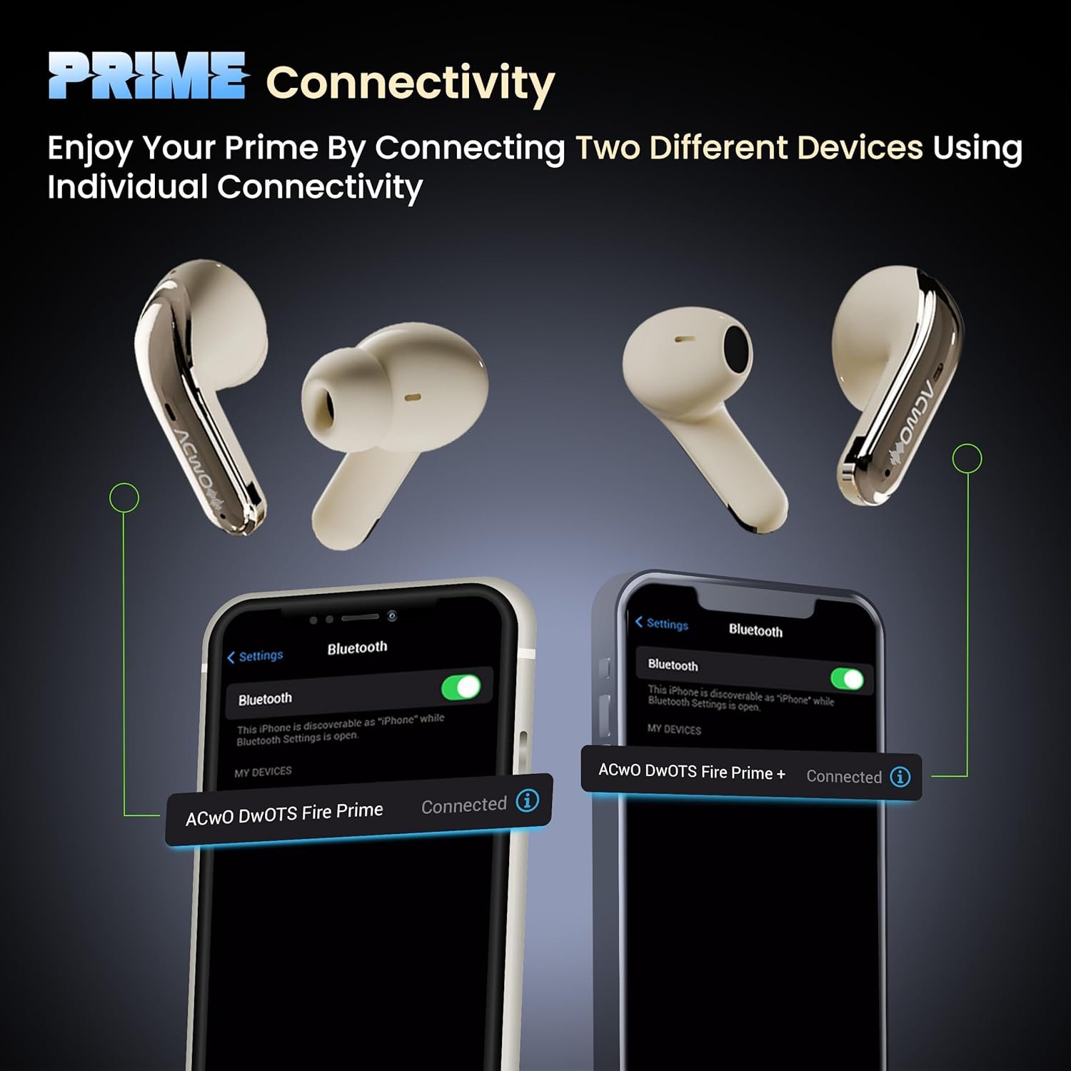 ACwO Fire Prime TWS Earbuds (in-Ear & Half-in-Ear in 1 Case) | Smart HD Display + 40DB ANC (in-Ear) | 80 Hrs Playtime | | 4 Mics AI-ENC | 3D Spatial Sound | BT V5.4 | Creme,Beige