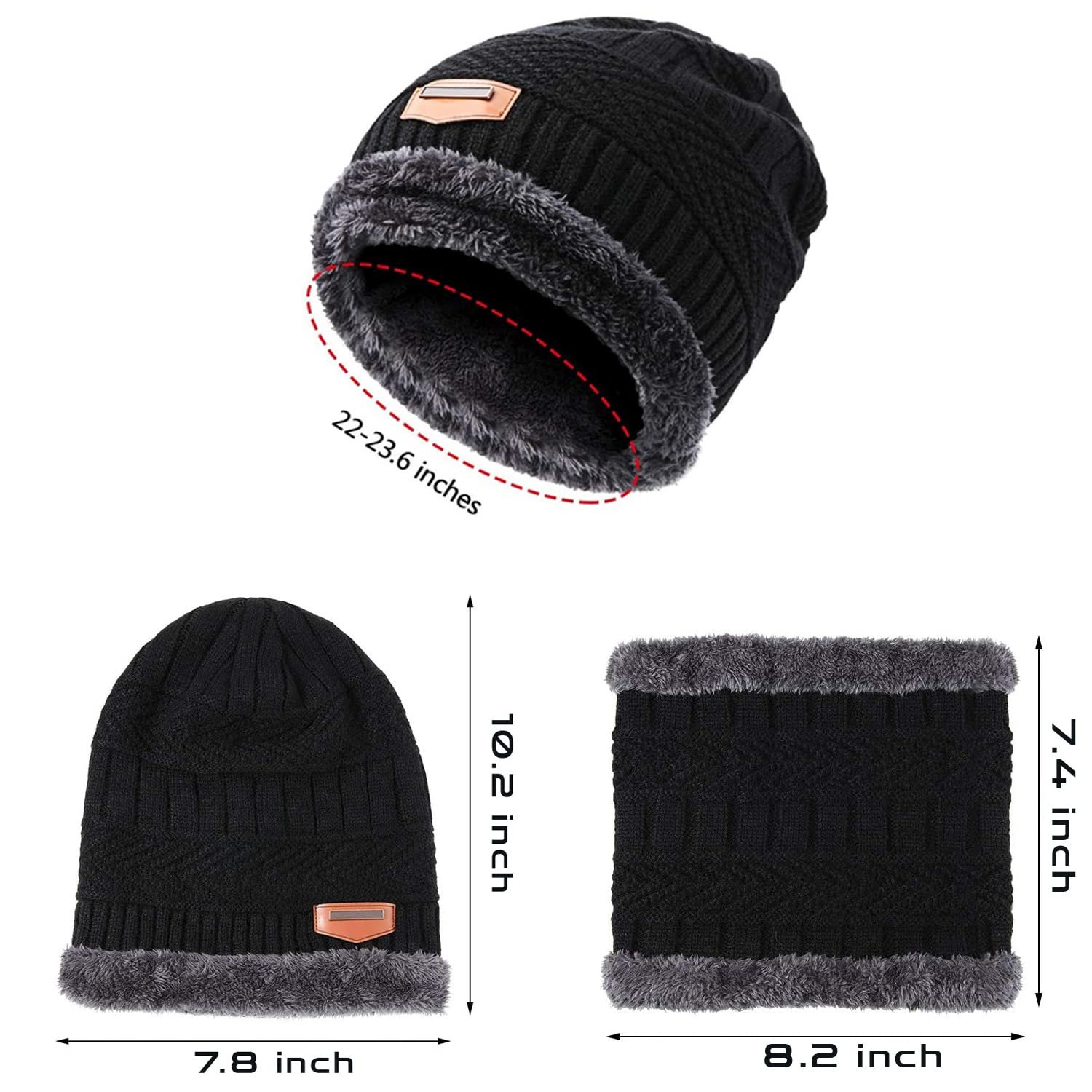 - Dual layers design. Super thick and chunky acrylic knit construction keeps you warm. The soft fleece inner lining has better heat retention, enjoy the maximum warmth. Delicate sewing thread provides added durability. This winter hat and scarf set are perfect for daily wearing including indoor and outdoor activities, for example: sleeping, walking your dog, cycling, skiing, snowboarding, running, camping, traveling, fishing, hiking, motorcycling, and so on.
