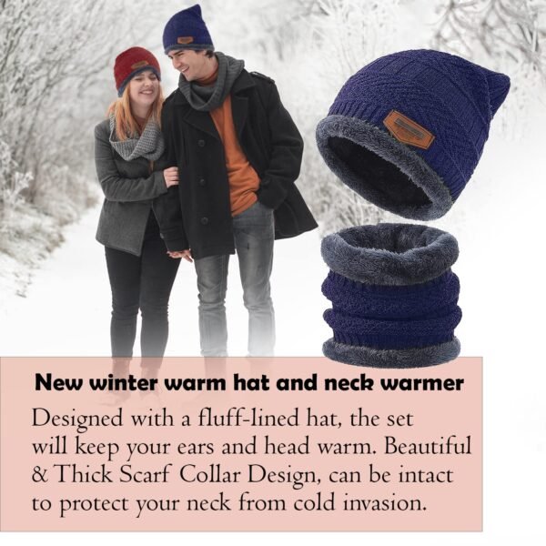 ADA Wool Winter Wear Knit Beanie Casual Style Hats & Scarf Set, Neck Warmer With Thick Fleece Lined For Men And Women