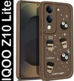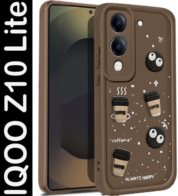 AeoFit Back Cover for iQOO Z10 Lite 5G | Cute Fun 3D Cartoon, Coffee Design Silicone Case | Full Body Protection Bumper Case (Brown)