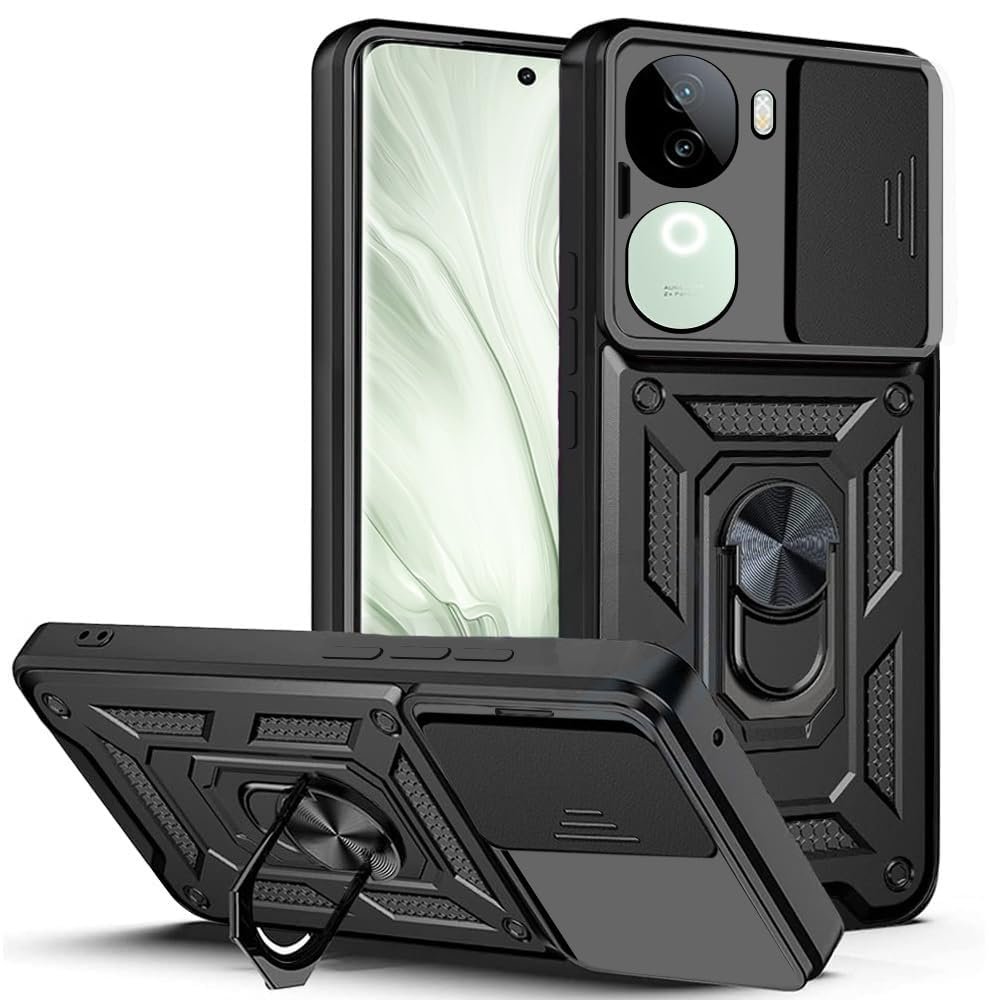 AIBEX® Back Cover for Vivo V40e 5G / iQOO Z9s 5G | D10 Tough Armor Case | Sliding Camera Shield | 360° Protection | Kickstand Ring Holder | Military-Grade Shockproof Bumper Case