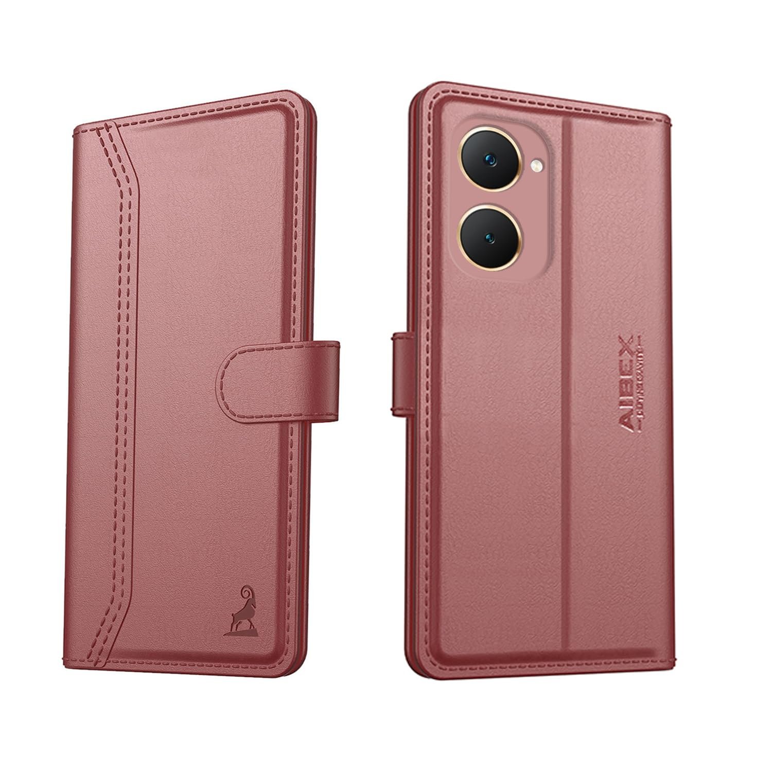 AIBEX ® Compatible for iQOO Z9 Lite 5G / Vivo Y28S 5G / Vivo T3 Lite 5G / Vivo Y18 4G / Vivo Y18e 4G / Vivo Y18i 4G Flip Cover Leather Finish | Inside TPU with Card Pockets | Wallet Stand -Brown