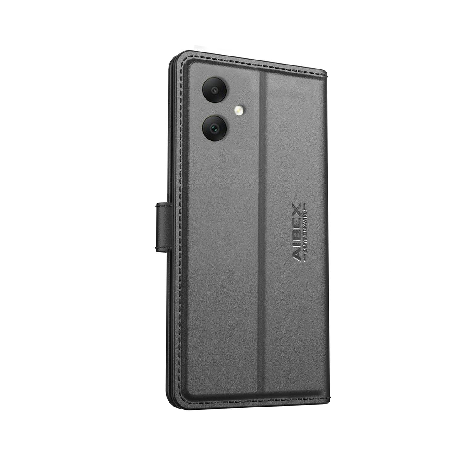 AIBEX ® Compatible for Samsung A05 / Samsung F05 / Samsung M05 Flip Cover Leather Finish | Inside TPU with Card Pockets | Wallet Stand | Complete Protection Flip Case – Black