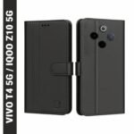 AIBEX ® Shock Proof Flip Compatible for iQOO Z10 5G / Vivo T4 5G Flip Cover Leather Finish | Inside TPU with Card Pockets | Wallet Stand | Complete Protection Flip Case – Black