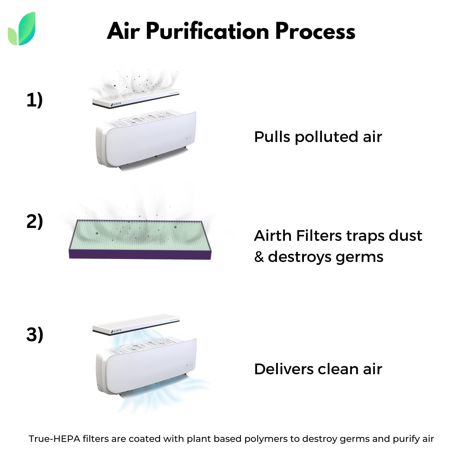 Reliable AC Filter for Split AC: The AIRTH air purifier is a dependable AC filter for split AC, designed to ensure optimal performance of your air conditioning unit. With this AC filter, breathe easy knowing your home’s air is clean and pure.