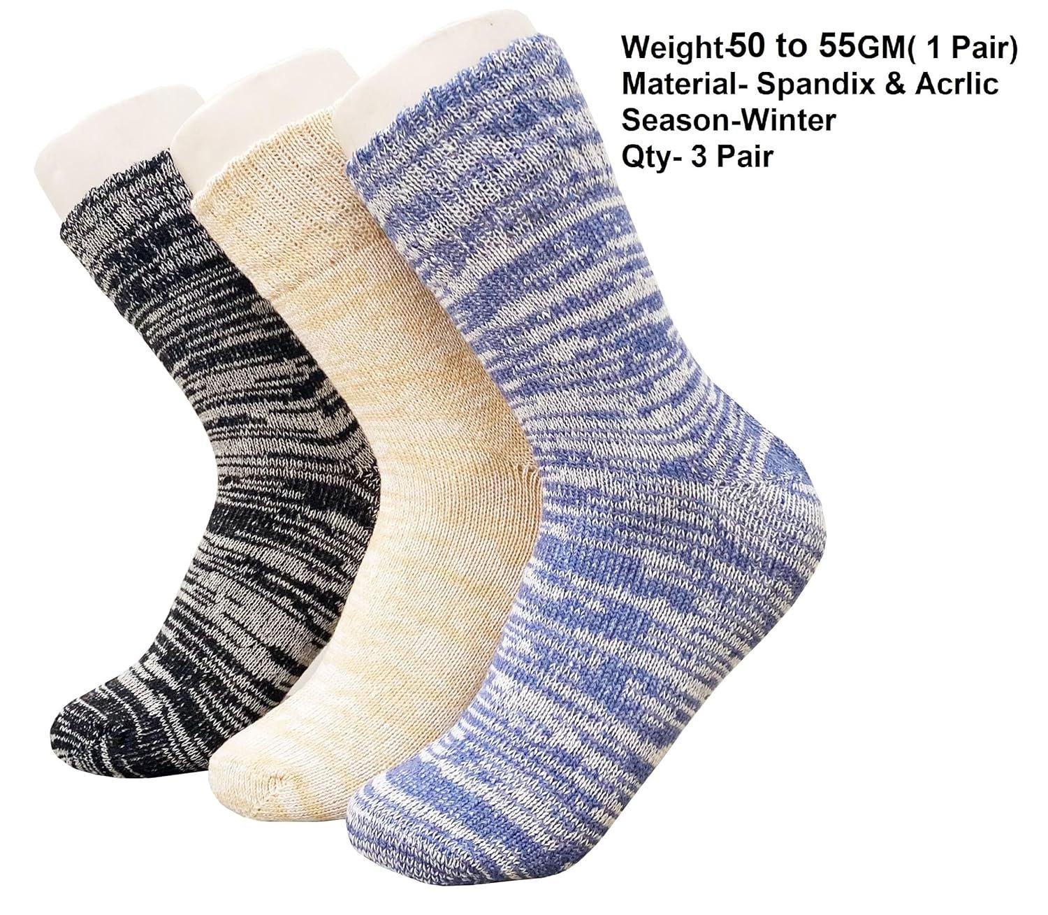 3 Pair Man soft cozy fuzzy Woolen socks winter warm bed socks (without Thumb Socks) . This winter socks give your feet a soothing touch with woolen material full warm super soft woolen without thumb socks stretchable socks mix coloured woolen socks, made from acrylic wool and spandex for elasticity, specially made to ease the skin and keep you warm. Do not iron or bleach