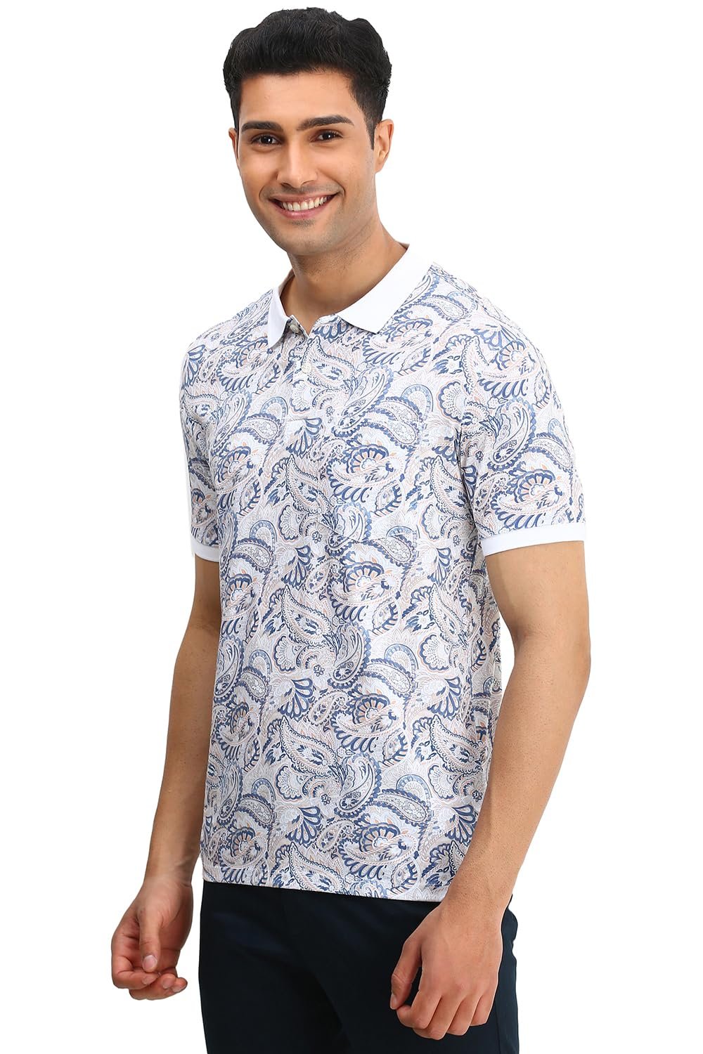 Allen Solly Men Cotton Print Polos Neck Regular Fit T-Shirt