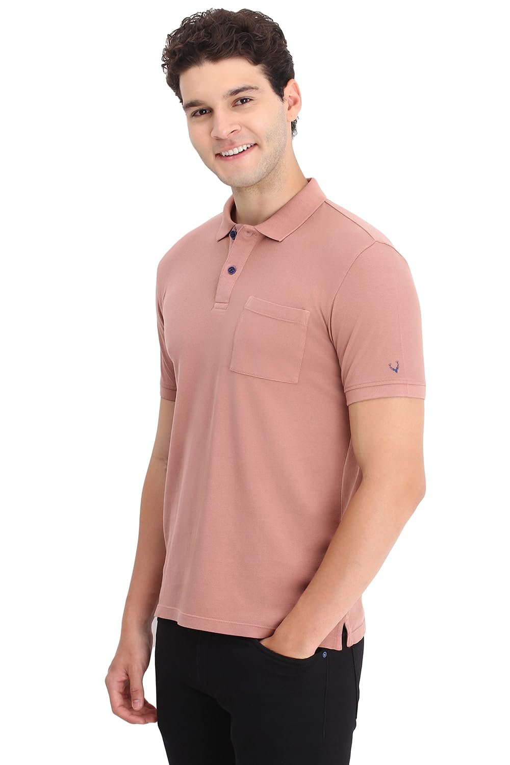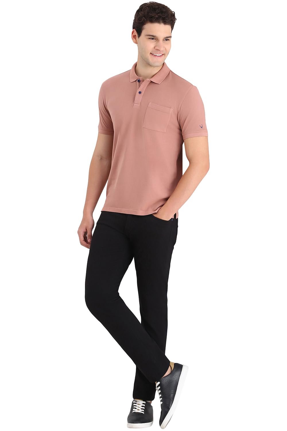 Ace weekend dressing in this Peach Textured Polo Neck T-shirt from Allen Solly Jeans by Allen Solly.