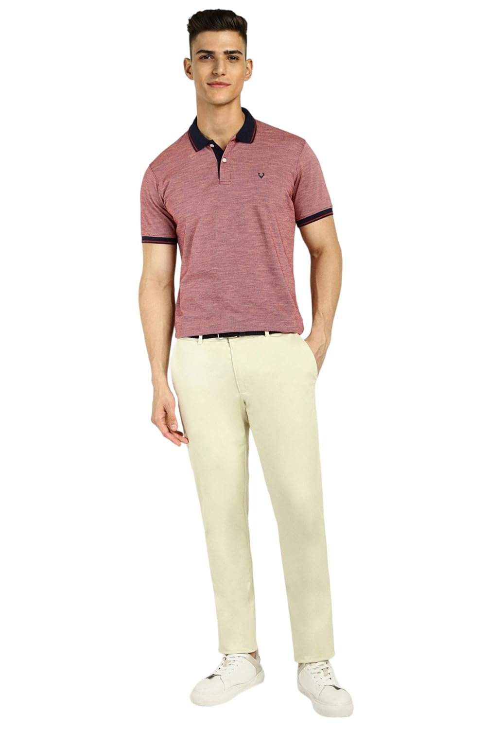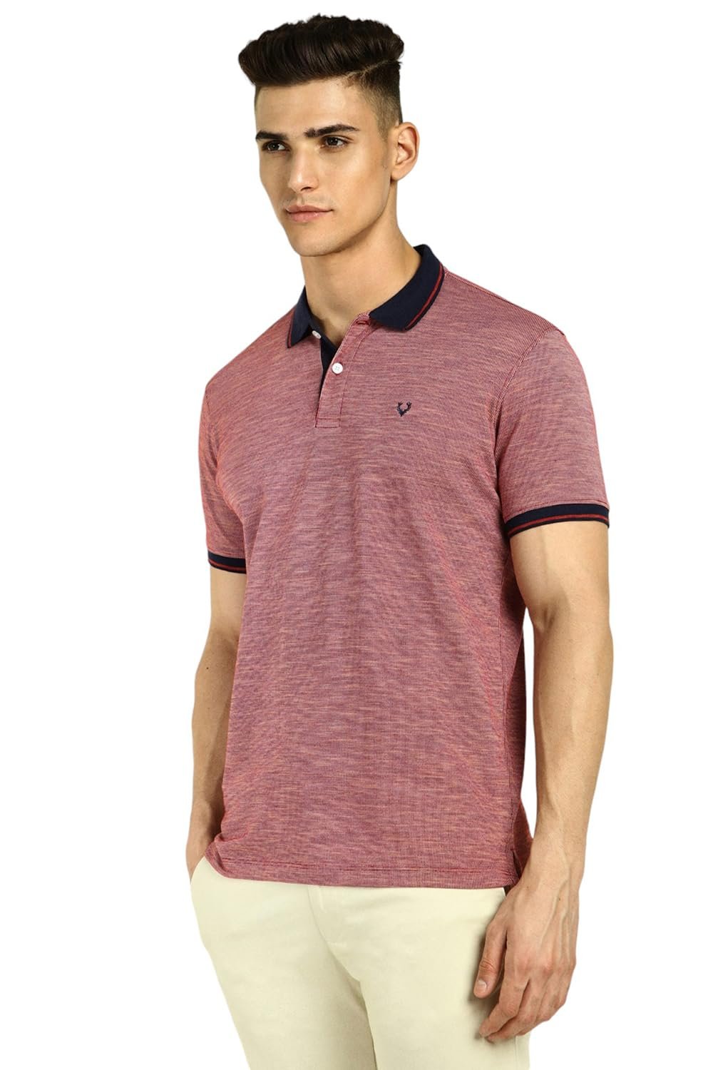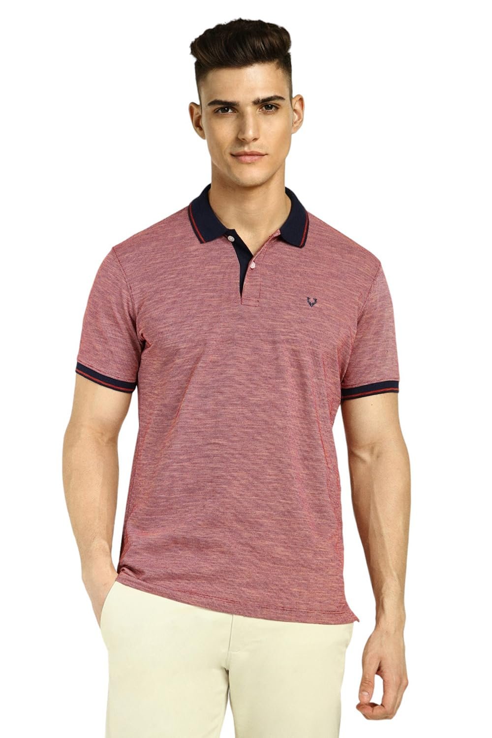 Ace weekend dressing in this Maroon Textured Polo Neck T-shirt from Allen Solly by Allen Solly.