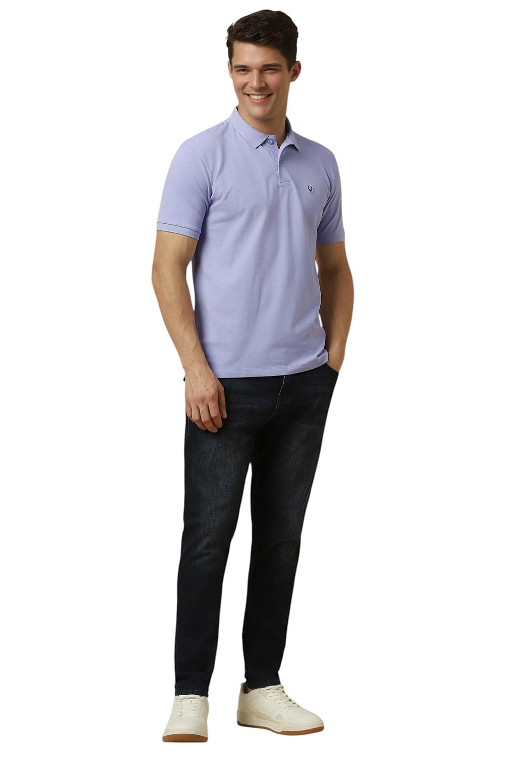 Allen Solly Men’s Cotton Lilac Solid Polo Neck Regular Fit T-Shirt