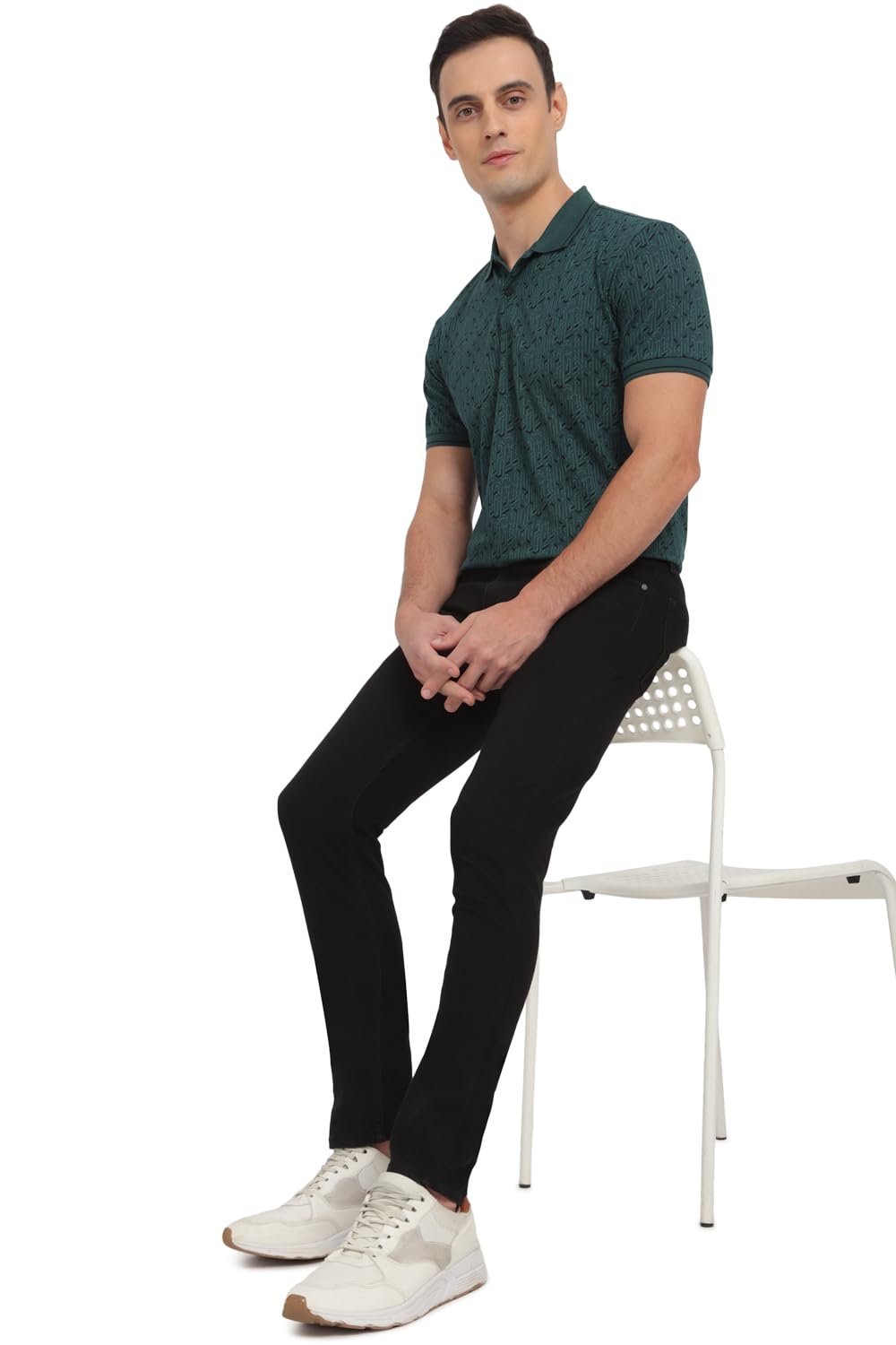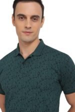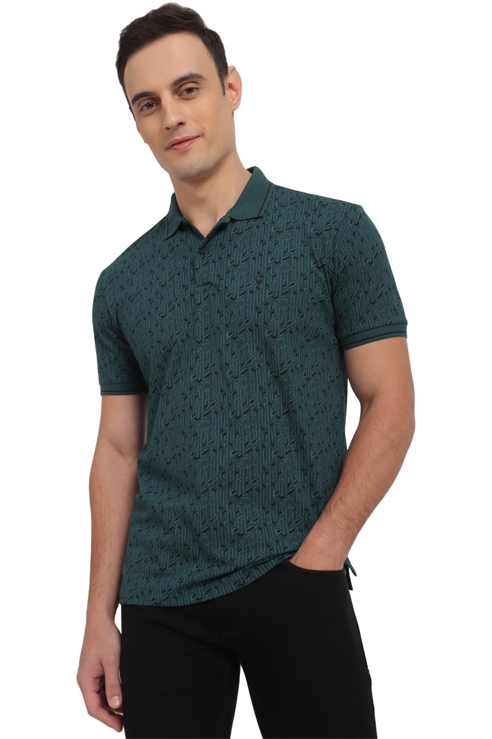 Ace weekend dressing in this Green Print Polo Neck T-shirt from Allen Solly by Allen Solly.