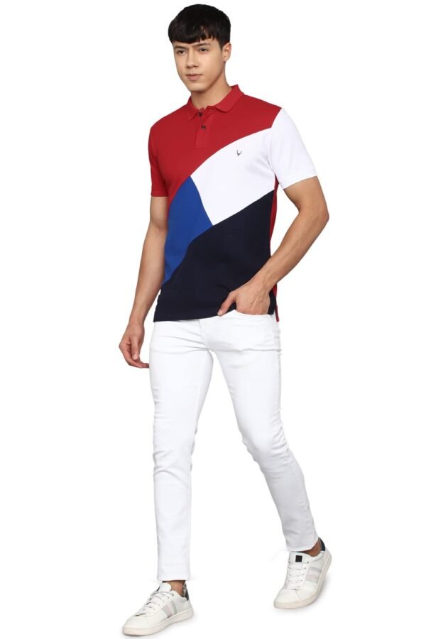 Introducing the stylish and comfortable Allen Solly men`s regular-fit polo t-shirt. Made from high-quality cotton material, this multi-color t-shirt features a classic polo neck and half sleeves. Perfect for any casual occasion, this versatile t-shirt can be paired with various bottoms and accessories to create a trendy and effortless ensemble. Look your best and exude confidence with the Allen Solly men`s t-shirt- a must-have addition to any fashion-forward wardrobe.