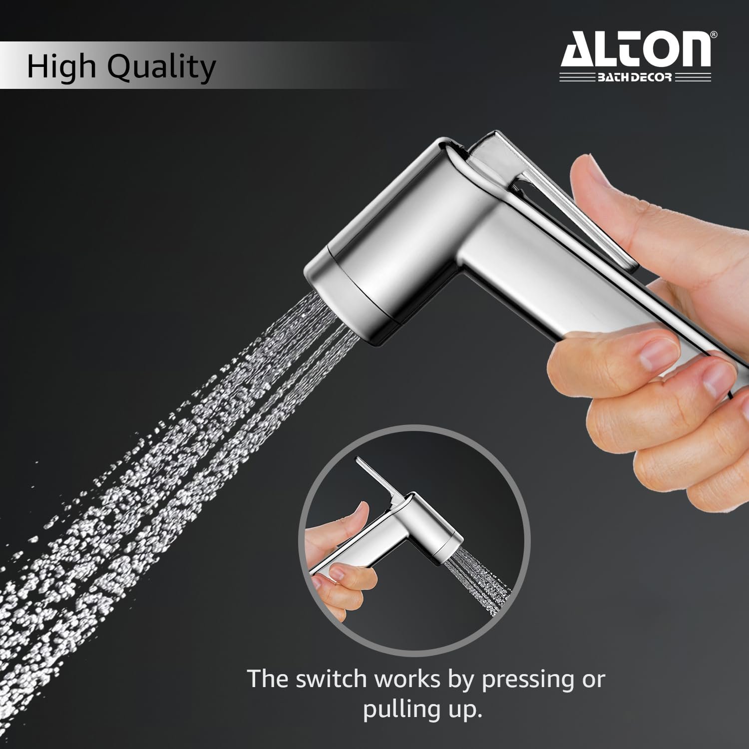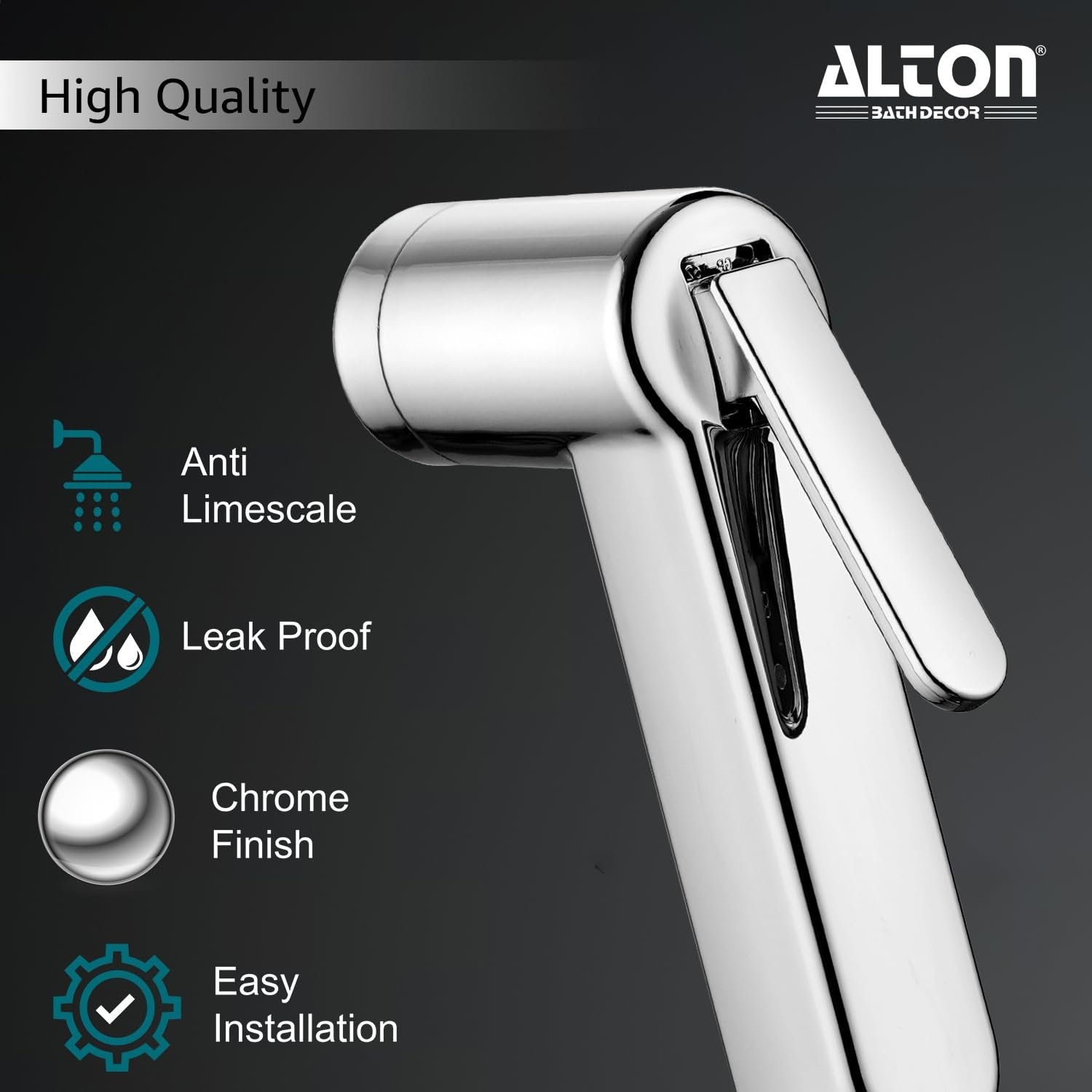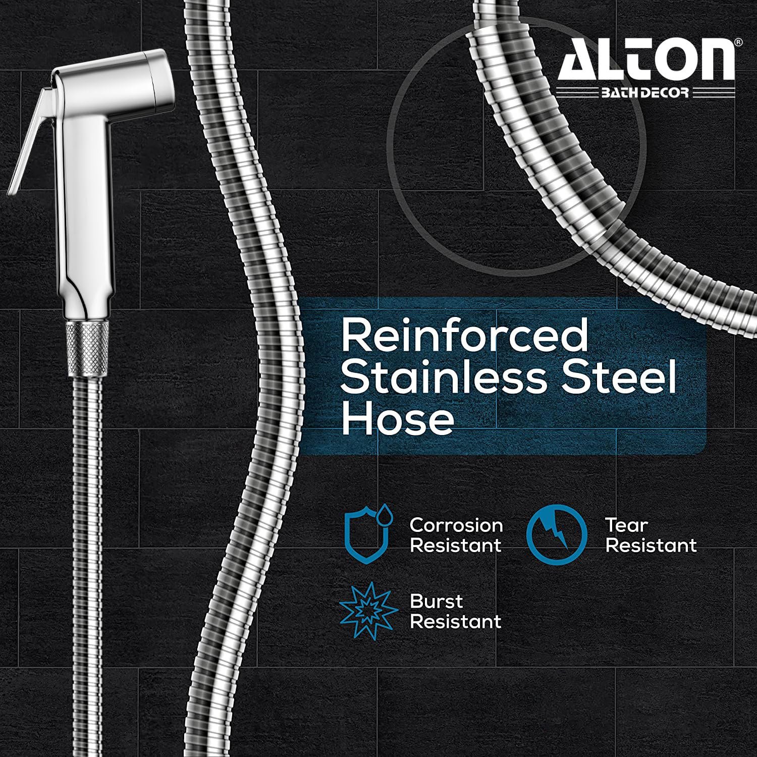 ALTON SHR20910 ABS Health Faucet with SS-304 Grade 1.25 Meter Flexible Hose Pipe and Wall Hook, Chrome Finish (Jet Spray for Toilet)