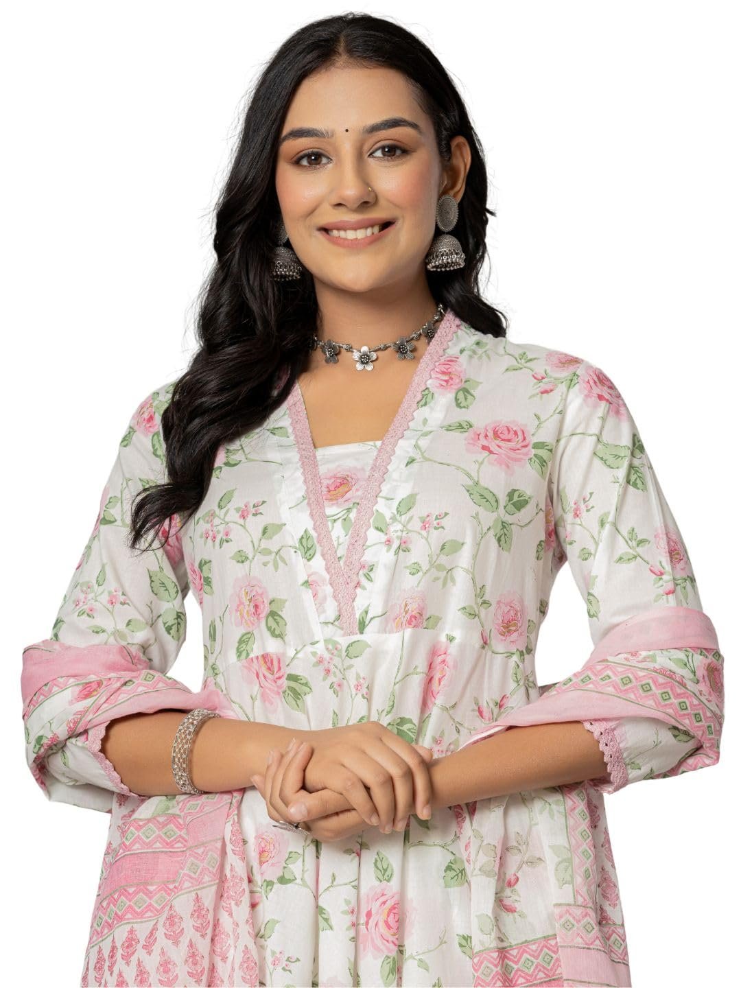 Amayra Women’s Cotton Printed Anarkali Kurta with Palazzo Pants and Dupatta