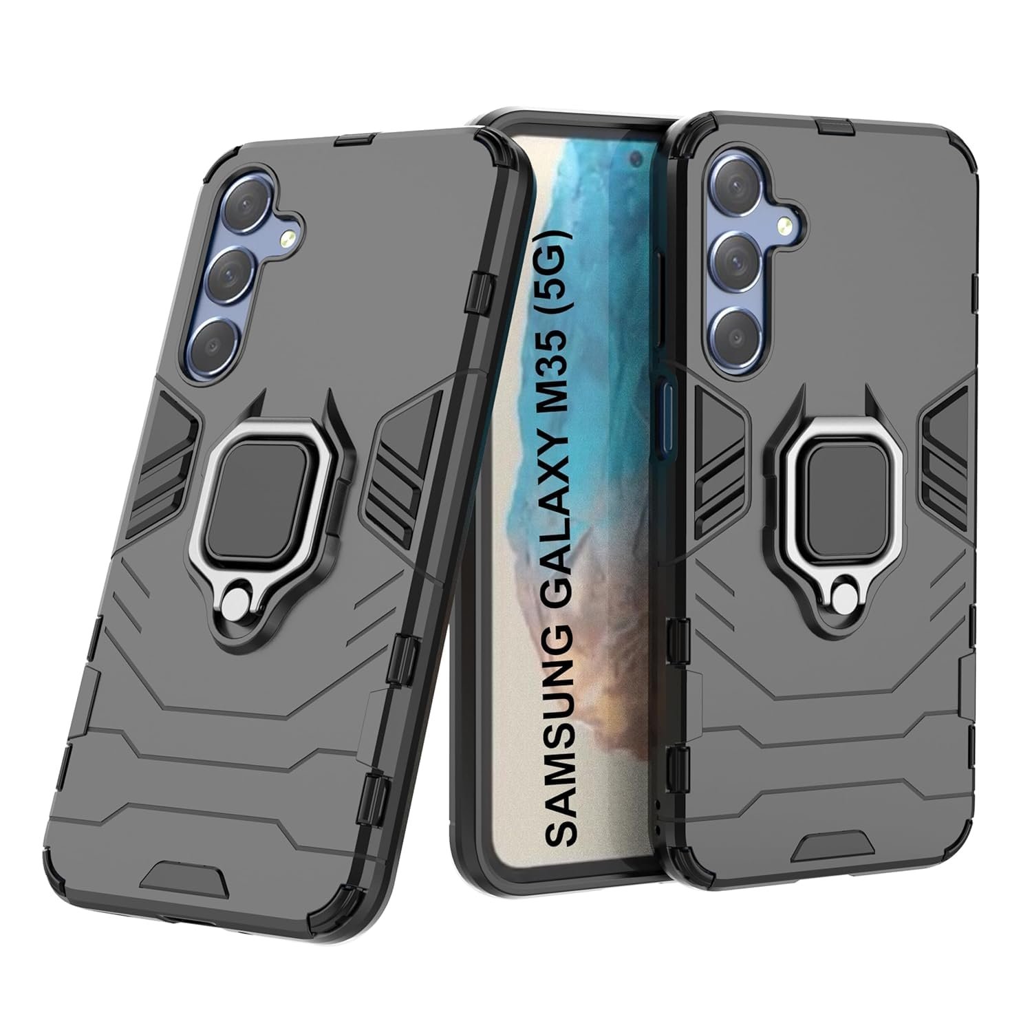 amazon basics Armor Bumper Back Case Cover for Samsung Galaxy M35 5G | Stylish Ring Holder & Inbuilt Stand | Shockproof TPU Protective Design | 360 Degree | Samsung M35 5G Back Cover – Black