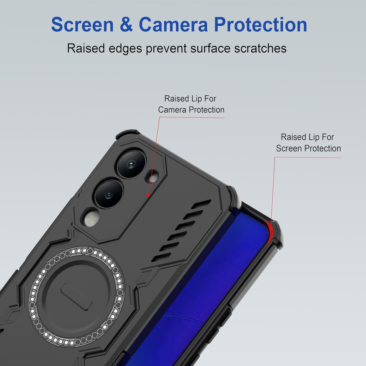 [Full Protection with Military-Grade Drop Resistance]: Provides Edge-to-Edge protection with a durable dual-layer design and shock-absorbing Air-Guard corners. Raised screen edges and a reinforced camera guard lens frame offer enhanced scratch and impact protection where it matters most.