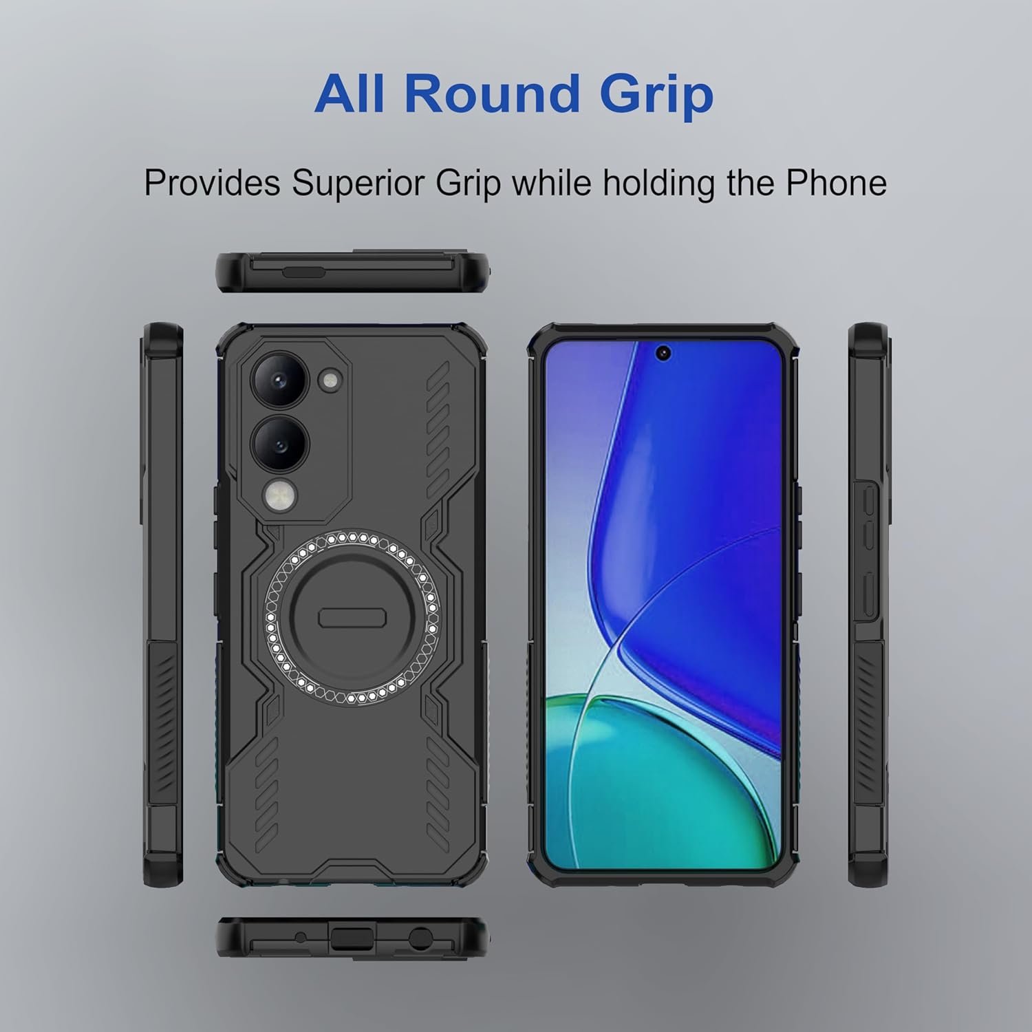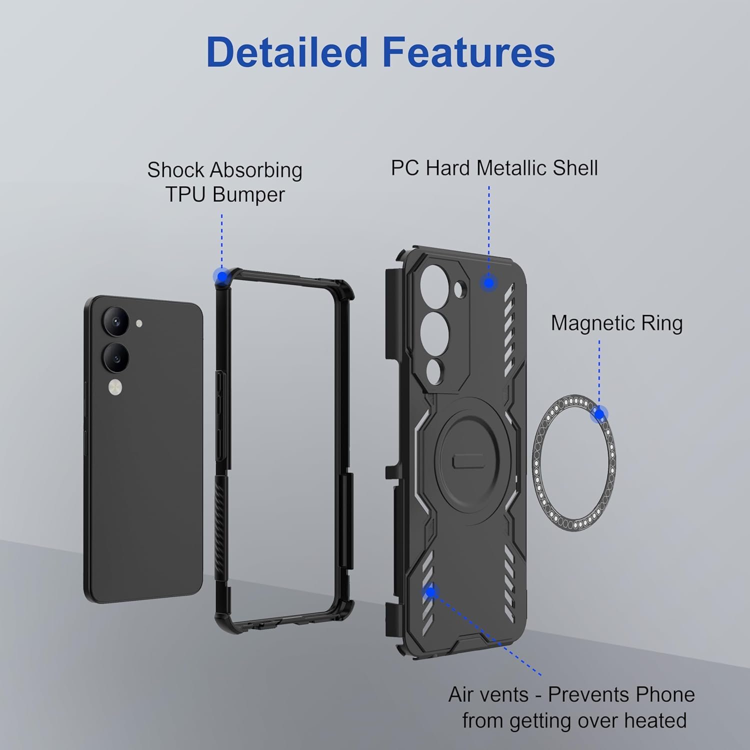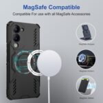 [Material]: Made with high-quality shock-absorbing TPU bumper, sturdy PC metallic shell, and an integrated MagSafe Ring for MagSafe support. Smart airflow design with open vents helps prevent the phone from overheating during extended use or charging.