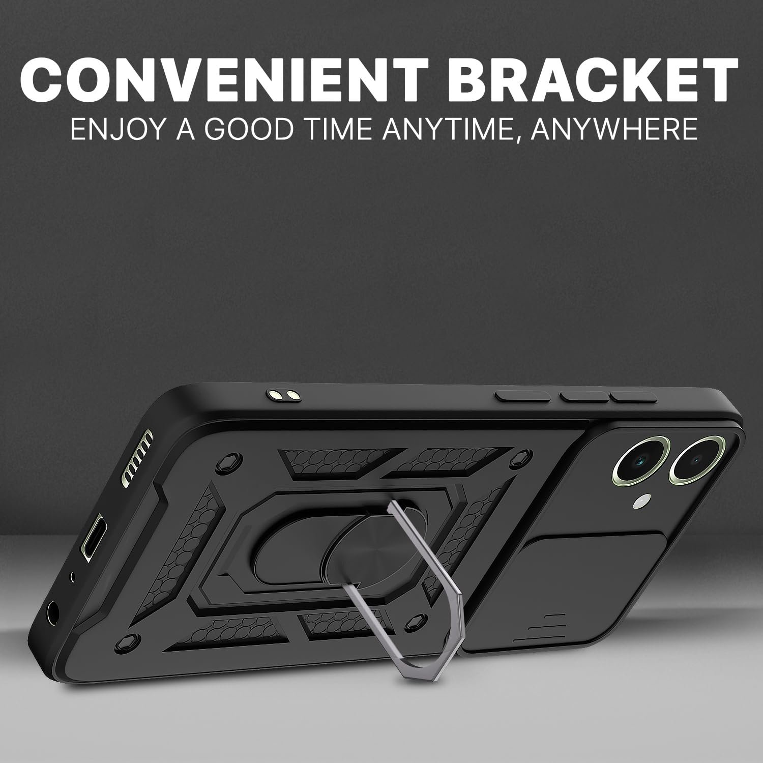 Ultimate Protection: Your phone is shielded from incidental drops and impacts by the Anti-Skid Texture and Anti-Drop Ring Grip. The back’s robust construction is able to endure all of life’s little dings and scratches.