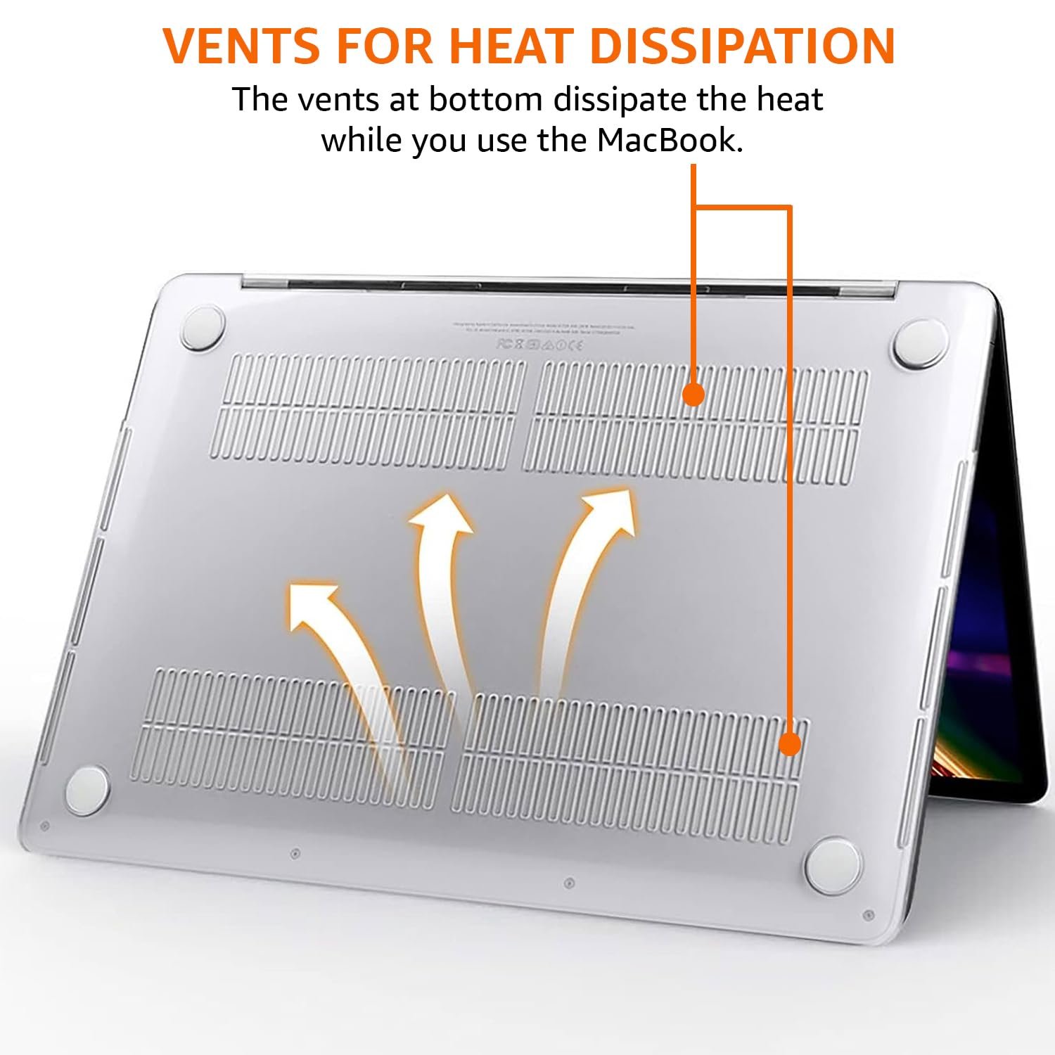 Easy to put on and take off and Plug your charger, cable or headset without removing the protective case. Air-follow through ventilation areas for heat release, Rubberized feet to keep your MacBook firmly in place; Totally removable, easy to put on and take off which can protect your laptop from scrapes and scratches.