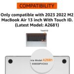 Only compatible with MacBook Air 13.6-inch (13”) Model A2681 (2022 Released Version) with M2 Chip. Please double check your laptop’s model number “A1xxx” on the bottom of the laptop to determine the compatibility.