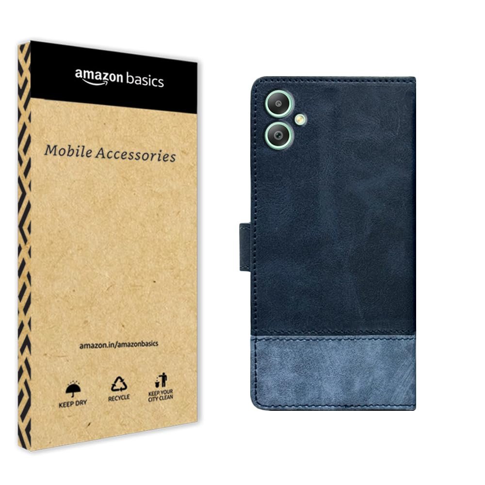 amazon basics Flip Back Cover Case for Samsung Galaxy M05 / A05 / F05 | Dual-Color Leather Finish | Inbuilt Stand & Pockets | Flip Back Cover for Samsung M05 / A05 / F05 (Blue with Sky)