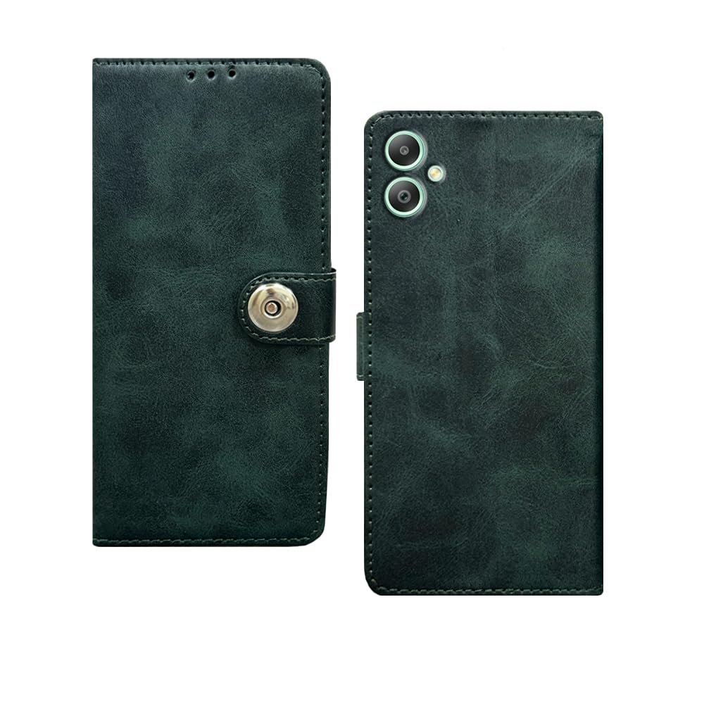 TheGiftKart Flip Cover Back Case for Samsung Galaxy M05 / A05 / F05 | Genuine Leather Finish | Designer Button | Inbuilt Pockets & Stand | Flip Cover for Samsung M05 / A05 / F05 (Faux Leather, Green)