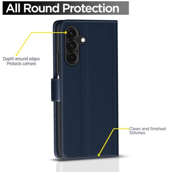 Amazon basics Flip Cover for Samsung Galaxy M35 5G | Leather Finish | Wallet Stand and Shock Proof | Complete Protection Flip Case (Blue)