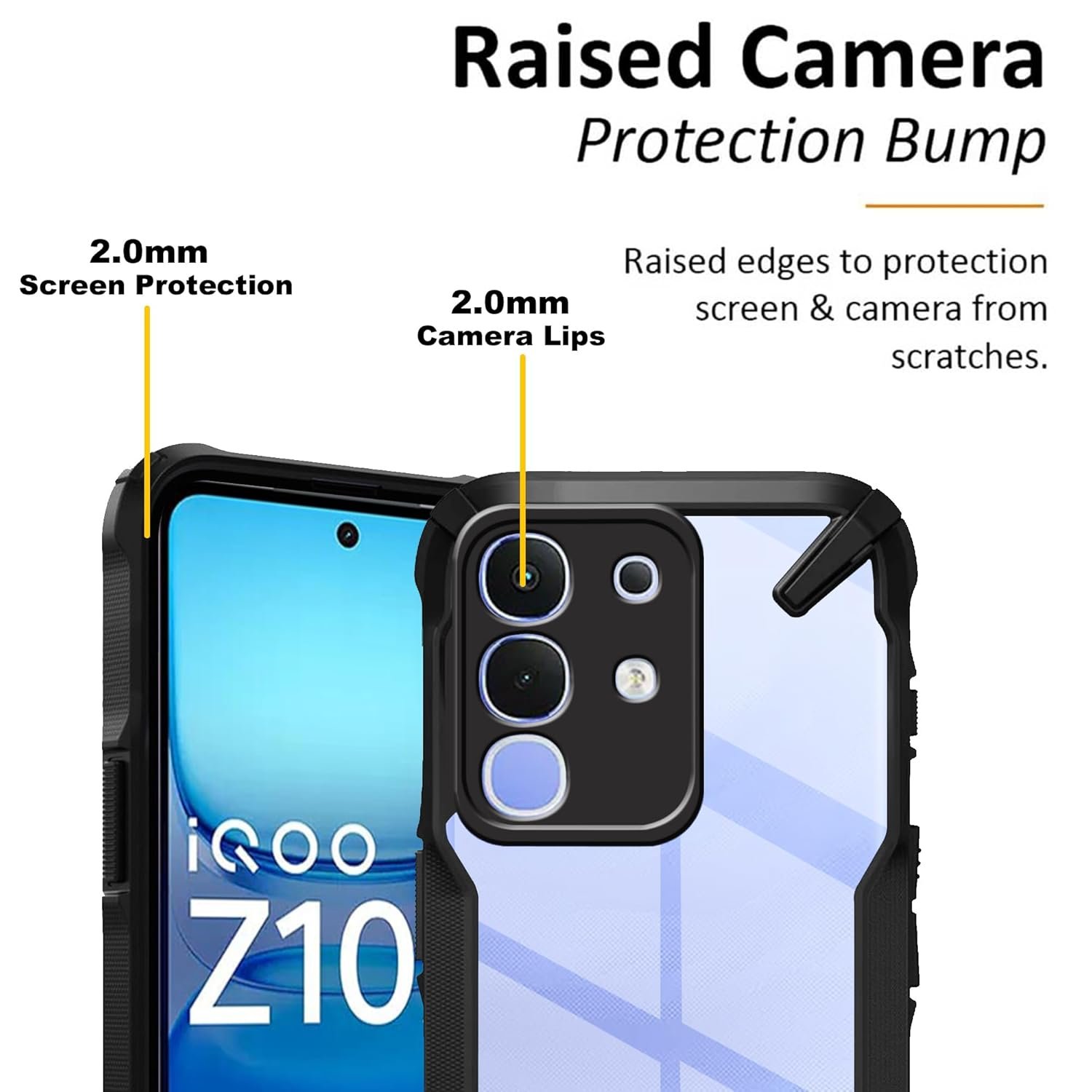 Protection : Iqoo Z10X 5G / Vivo T4X 5G Case provide best in class protection to your expensive phone with raised sides that protects it from falls and TPU Transparent back which provides it from scratches and damages.