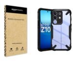 amazon basics Iqoo Z10X 5G / Vivo T4X 5G Back Cover | Crystal Clear Transparent Back | Ultra Hybrid | Full Camera Protection | Raised Edge | Bumper Back Case (Black)