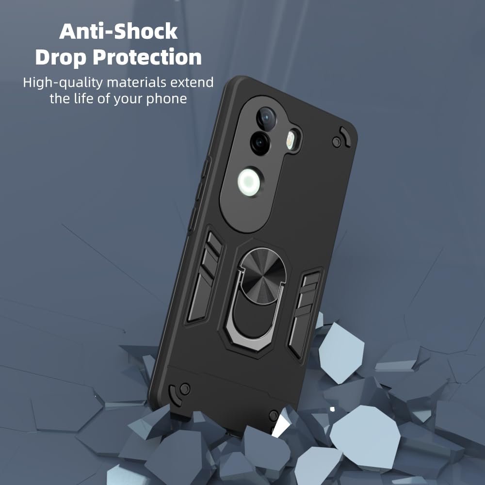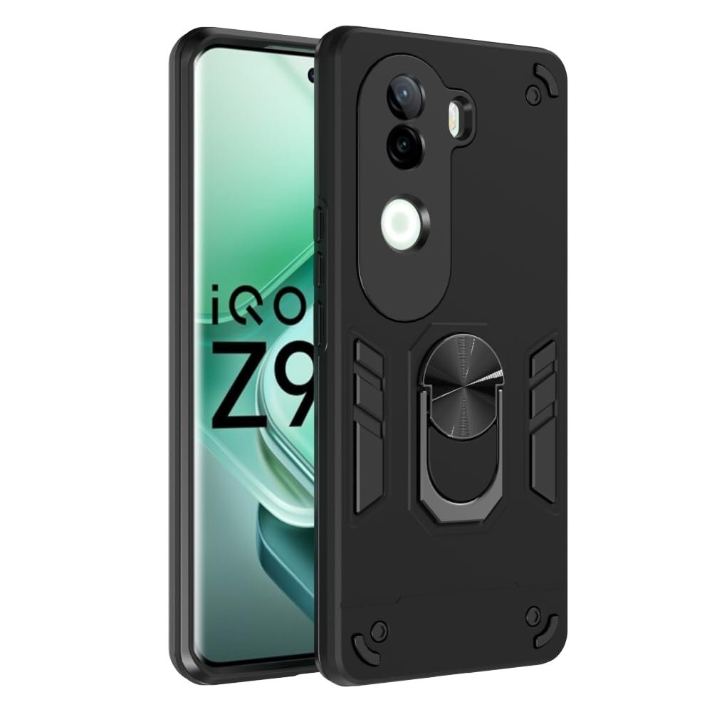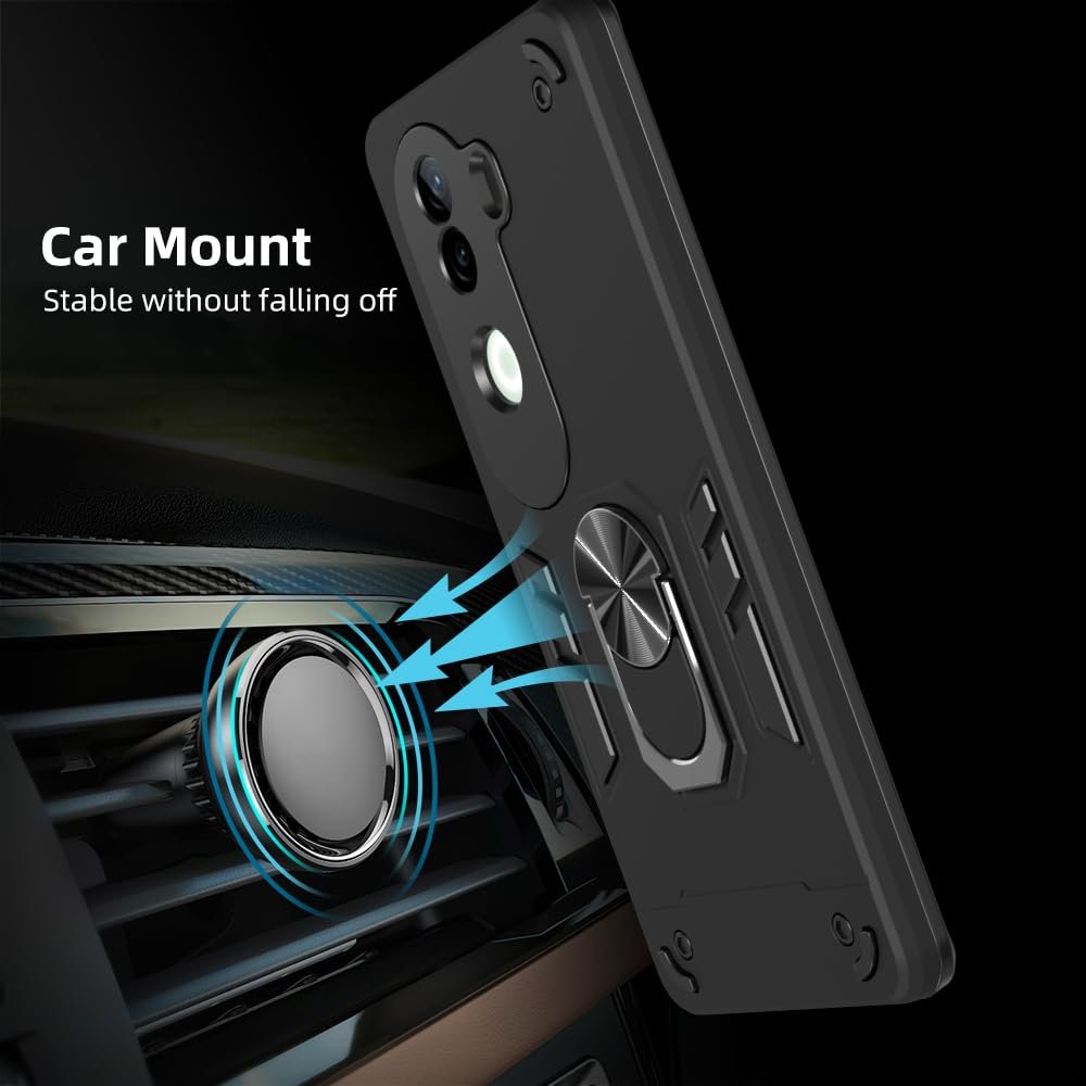 amazon basics Kickstand Mobile Cover (360° Rotating Ring Holder) for Vivo V40e 5G / iQOO Z9s 5G (Black)