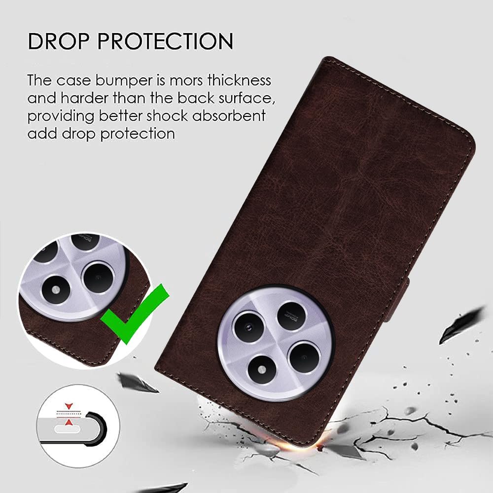 Amazon Brand-Solimo Flip Leather Mobile Cover (Soft & Flexible Back case) for Mi Redmi A4 5G / 14C 5G / 14R 5G / Poco C75 5G / M7 5G (Coffee)