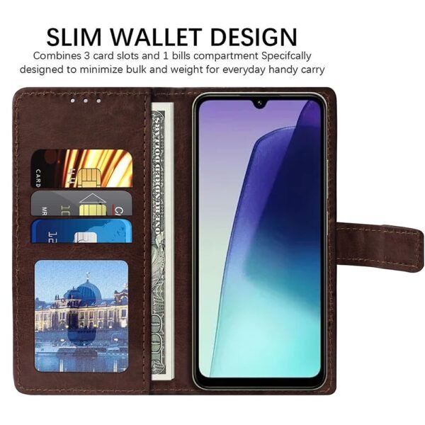 Amazon Brand – Solimo Shock Proof Flip Cover Back Case Cover for Samsung Galaxy M05 (Flexible | Leather Finish | Card Pockets Wallet & Stand | Chestnut Brown