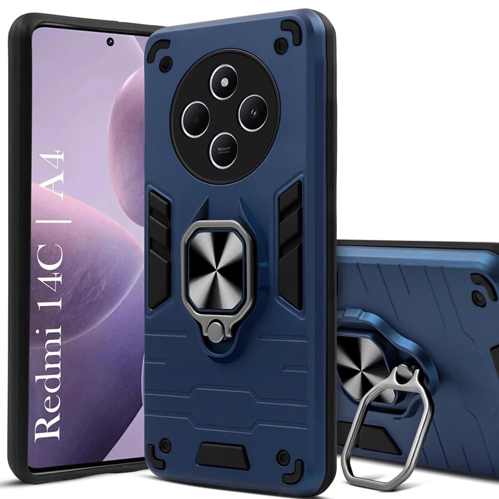 Amazon Brand-Solimo Kickstand Mobile Back Cover (360° Rotating Ring Holder) for Mi Redmi A4 5G / 14C 5G / 14R 5G / Poco C75 5G / M7 5G (Blue)