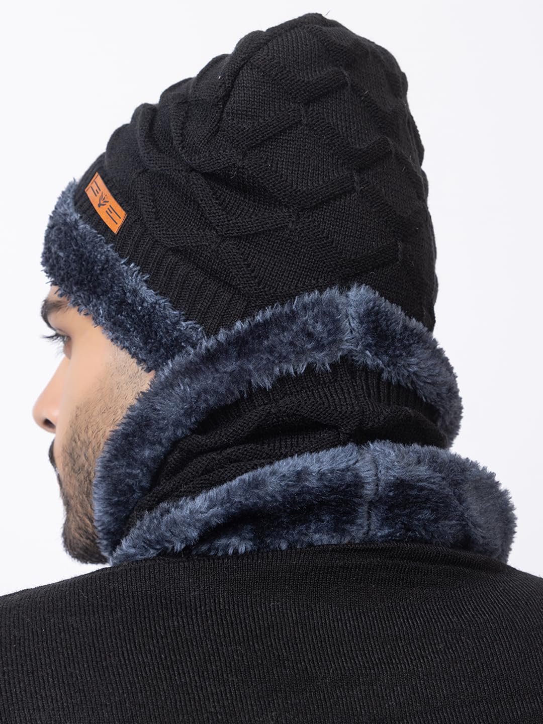 AMOLDO Winter Woolen Unisex Knit Beanie Cap And Neck Warmer Set With Fur Lining | Hat And Scarf Soft And Warm Combo Set For Men And Women