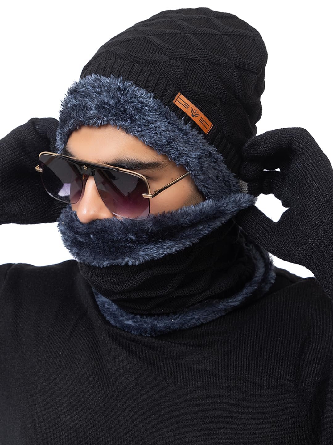 Introducing Amoldo’s stylish and comfortable unisex winter fleece hat and scarf set to keep you warm and cozy during the colder months. Made from 100% high-quality wool, this combo provides you with ultimate warmth and insulation in even the harshest winter conditions. Our neck set feature a stylish and versatile design that’s perfect for both men and women. Available in a variety of classic colors including black, gray and brown, this pack is the perfect addition to your winter wardrobe. The beanie, gloves and neck set is soft to the touch and lightweight, making it comfortable to wear for extended periods of time. The tight fit ensures the cover stays in place, preventing unwanted sliding or discomfort. Wide ribbed cuffs at the base of the gloves provide extra insulation, keeping your hands protected from the cold. Whether you’re running errands, taking a walk in the park or going skiing, our winter wool sets will keep you warm and looking stylish. Get our unisex fleece winter beanie cap, muffler and gloves today and experience the ultimate in comfort and warmth!