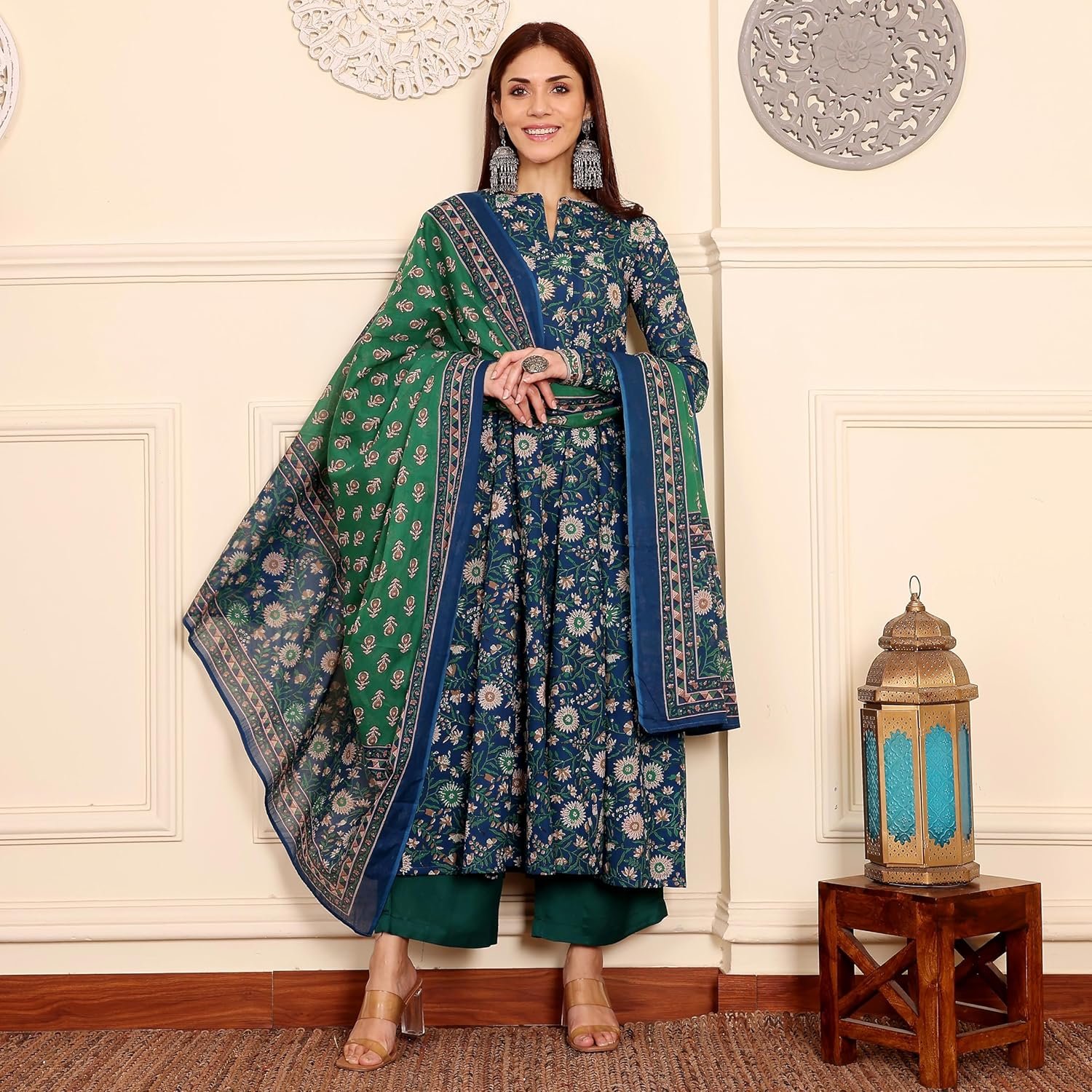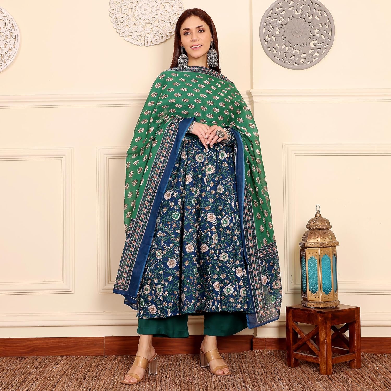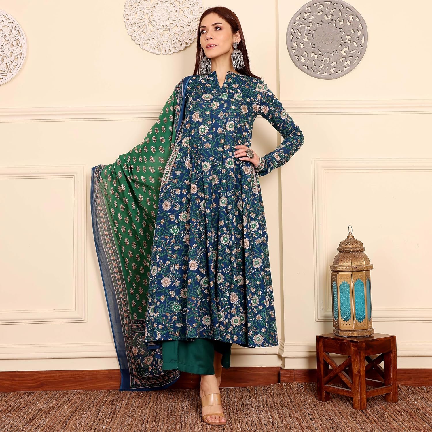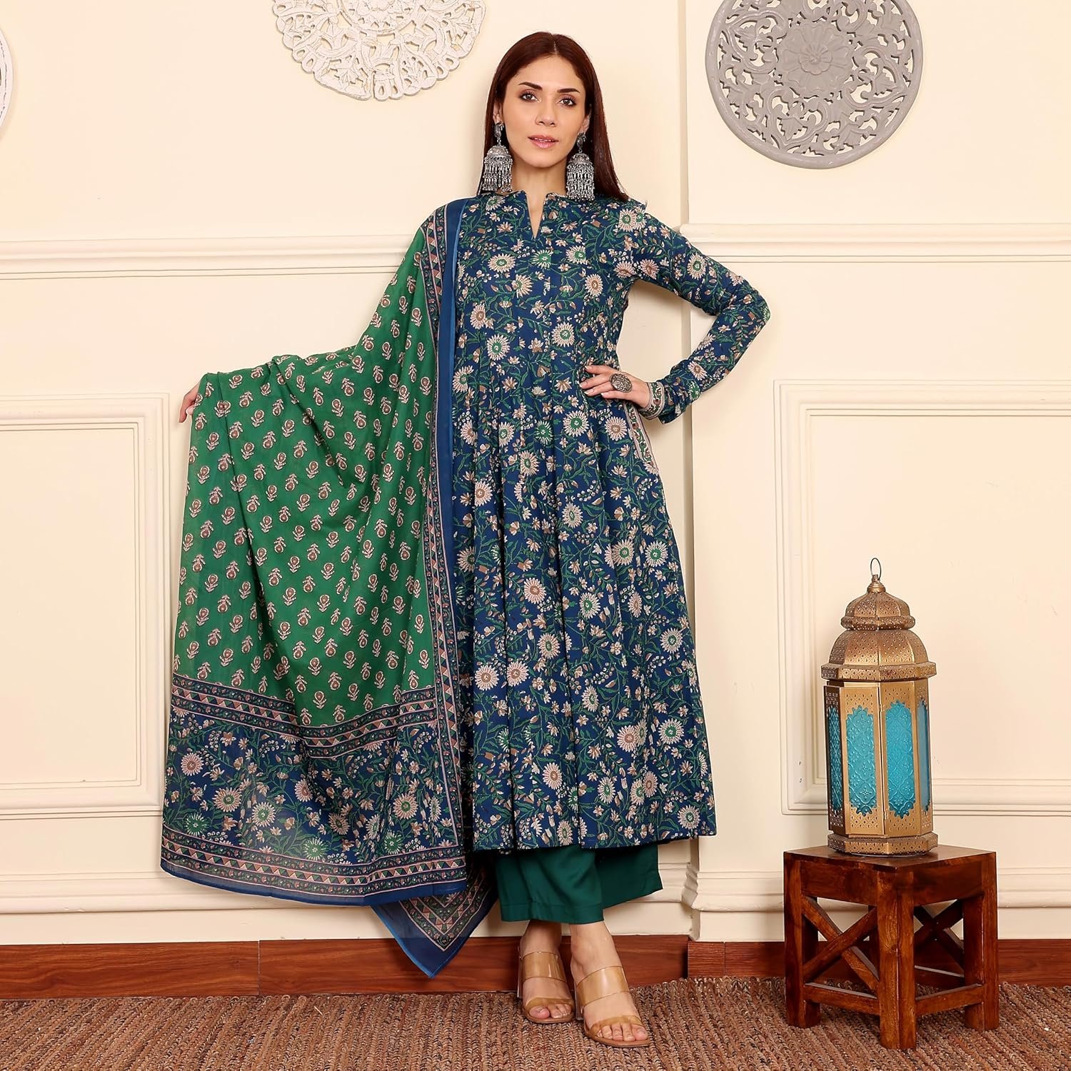 ANNI DESIGNER | Rayon Anarkali Printed Kurta with Pant & Dupatta | Women’s Kurta Set with Dupatta Ethnic Suit | Cotton Anarkali Style Kurti Set