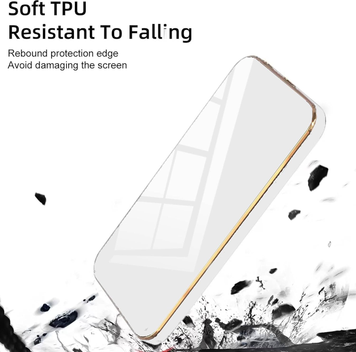 Apurb Store for iQOO Z10x 5G / Vivo T4x 5G | Plating Square Gold Frame Phone Case Luxury Soft Silicone Back Cover for iQOO Z10x 5G / Vivo T4x 5G | (White)