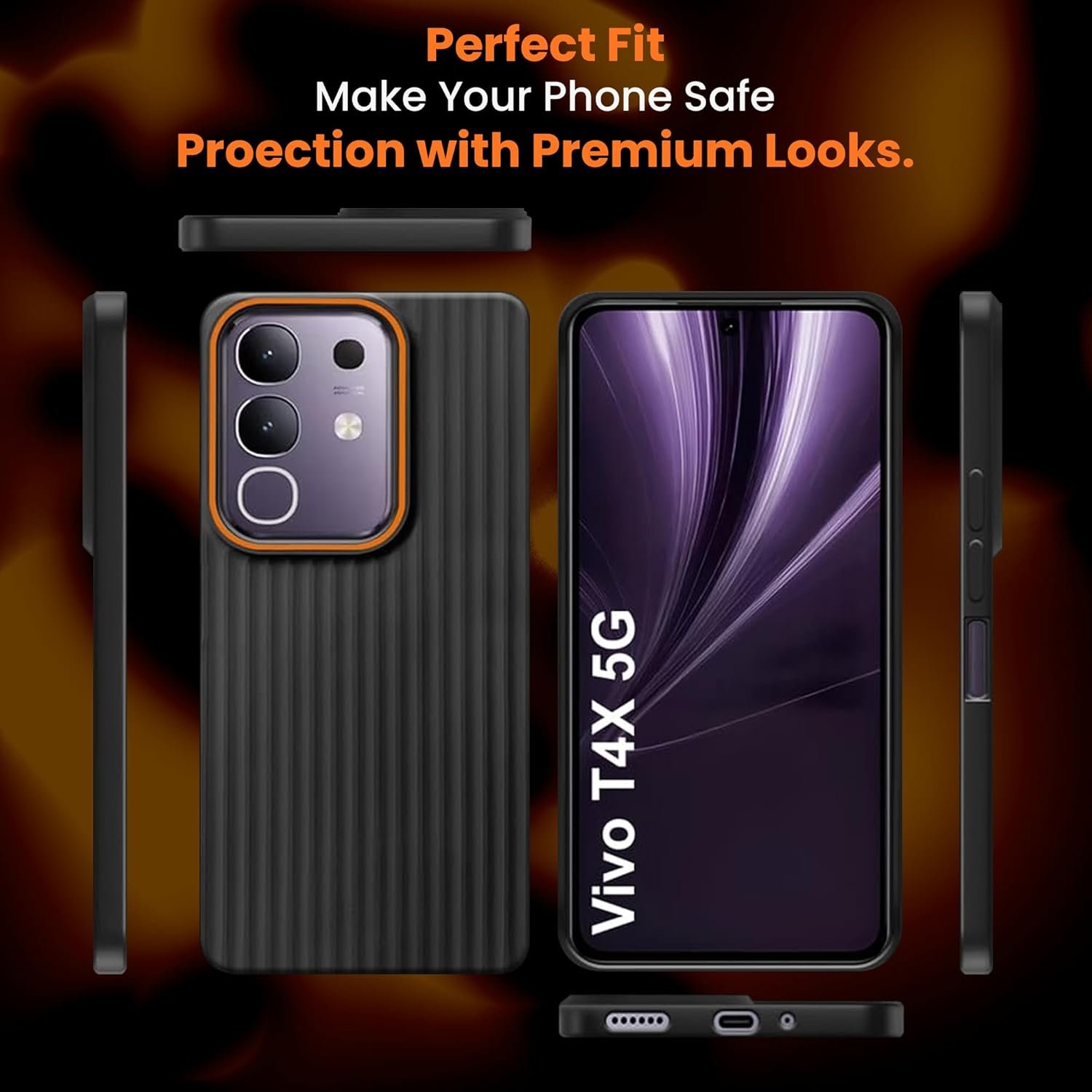 DESIGN: Stylish protective case with vertical ridged pattern and distinctive -accented camera ring for Vivo T4X and IQOO Z10X 5G