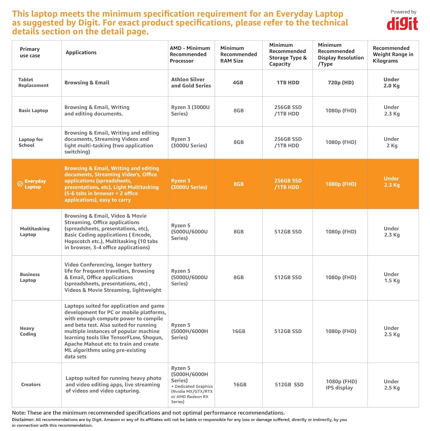 Processor: AMD Ryzen 3 7320U Mobile Processor (4-core/8-thread, 4MB cache, up to 4.1 GHz max boost)