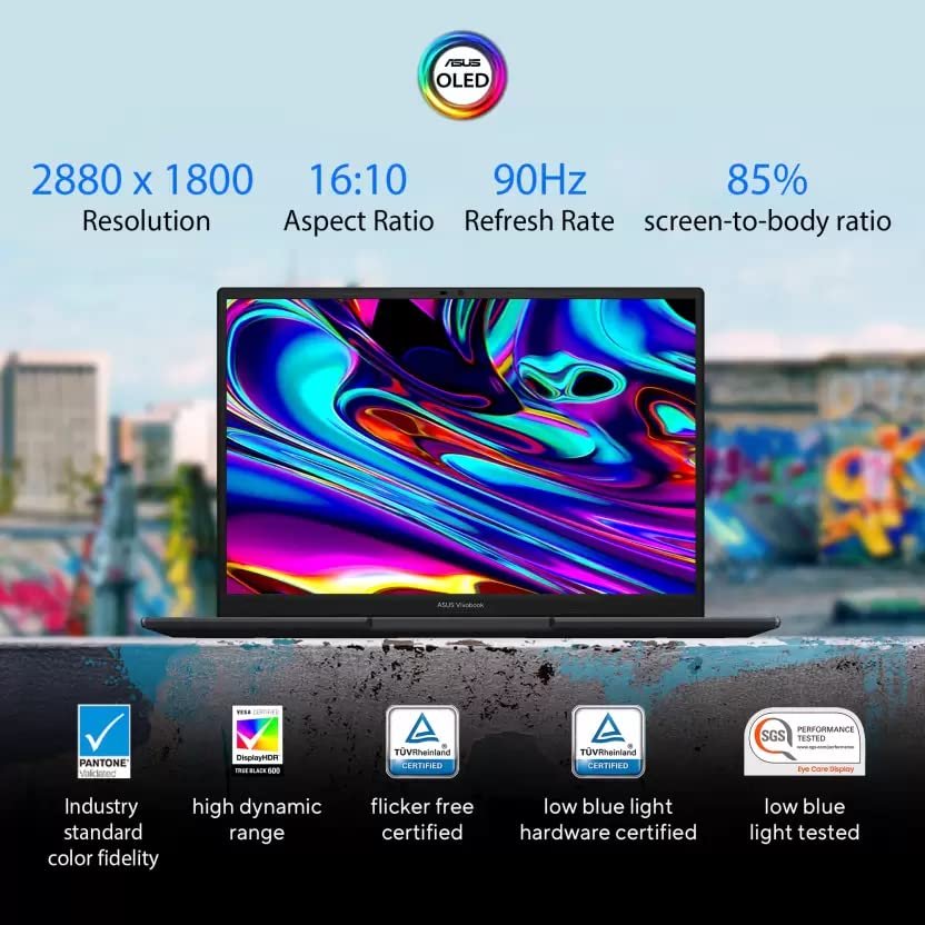 Boasting a powerful Intel Core-H series processor and PCIe 4.0 SSD, the Asus Vivobook laptop lets you experience unparalleled productivity while performing your daily computing tasks. And, with the 35.56 cm (14) 2.8K 90 Hz OLED NanoEdge display you can enjoy enhanced image quality on it.