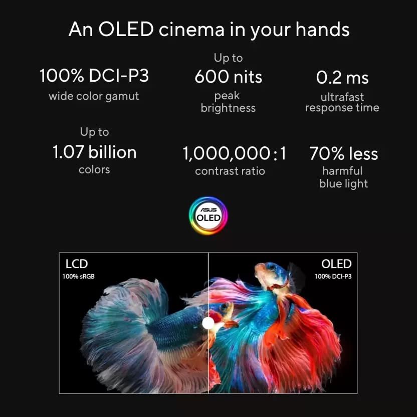 This ASUS OLED laptop is equipped with a 100% DCI-P3 color gamut at both high and low brightness levels that allows you to conveniently adjust the screen’s brightness according to your working environment, while letting you enjoy exceptionally vivid colors.